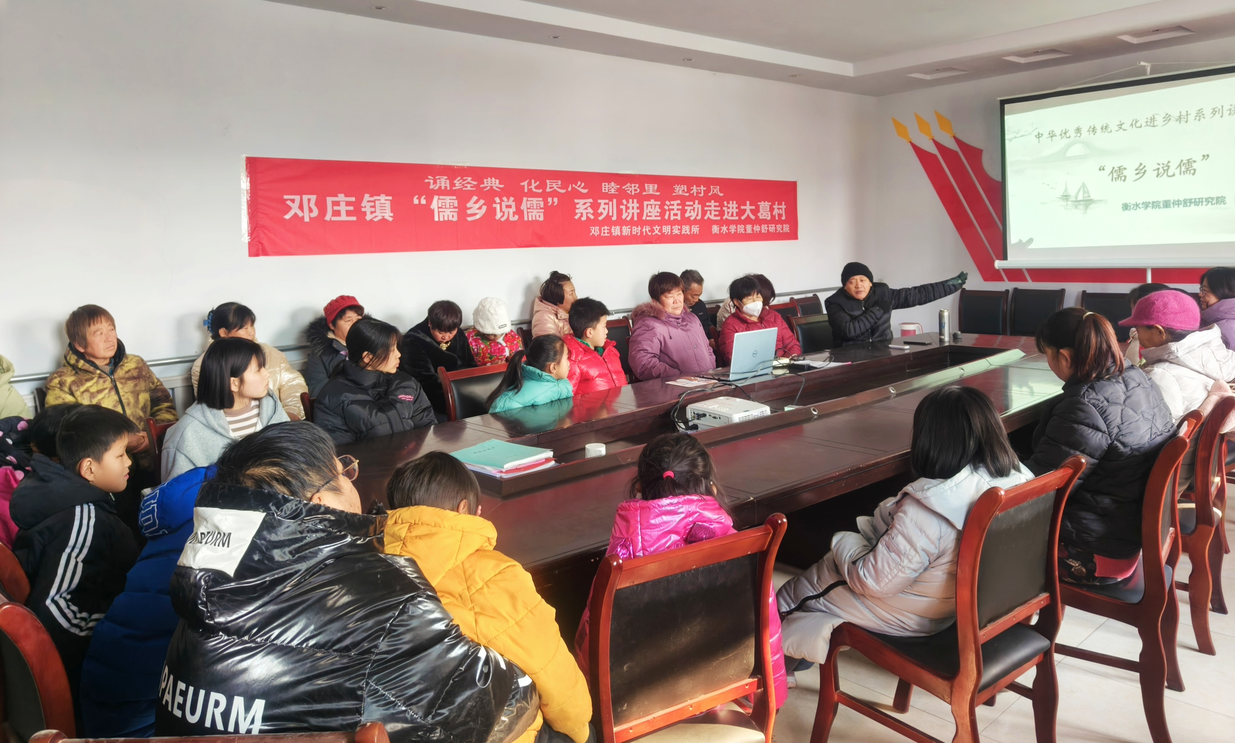 2月26日,衡水市桃城区邓庄镇北苏闸村开展了“传统文化进万家”系列活动——孝悌之道知识讲座。此次活动特邀衡水学院董仲舒研究院代春敏老师为大家讲述“孝悌之道”。“子游问孝。子曰:‘今之孝者,是谓能养;至于犬马,皆能有养……”现场,老师利用PPT的形式进行播放、宣传和讲解,让“孝悌”成为全社会的普遍共识和自觉行动,以自己的行动感召大家,做到思想行动上尊敬老人,不要淡漠老人,用真心去体会老人们的甘苦,用真情去化解老人们的烦闷,促进家庭和睦、社会和谐。