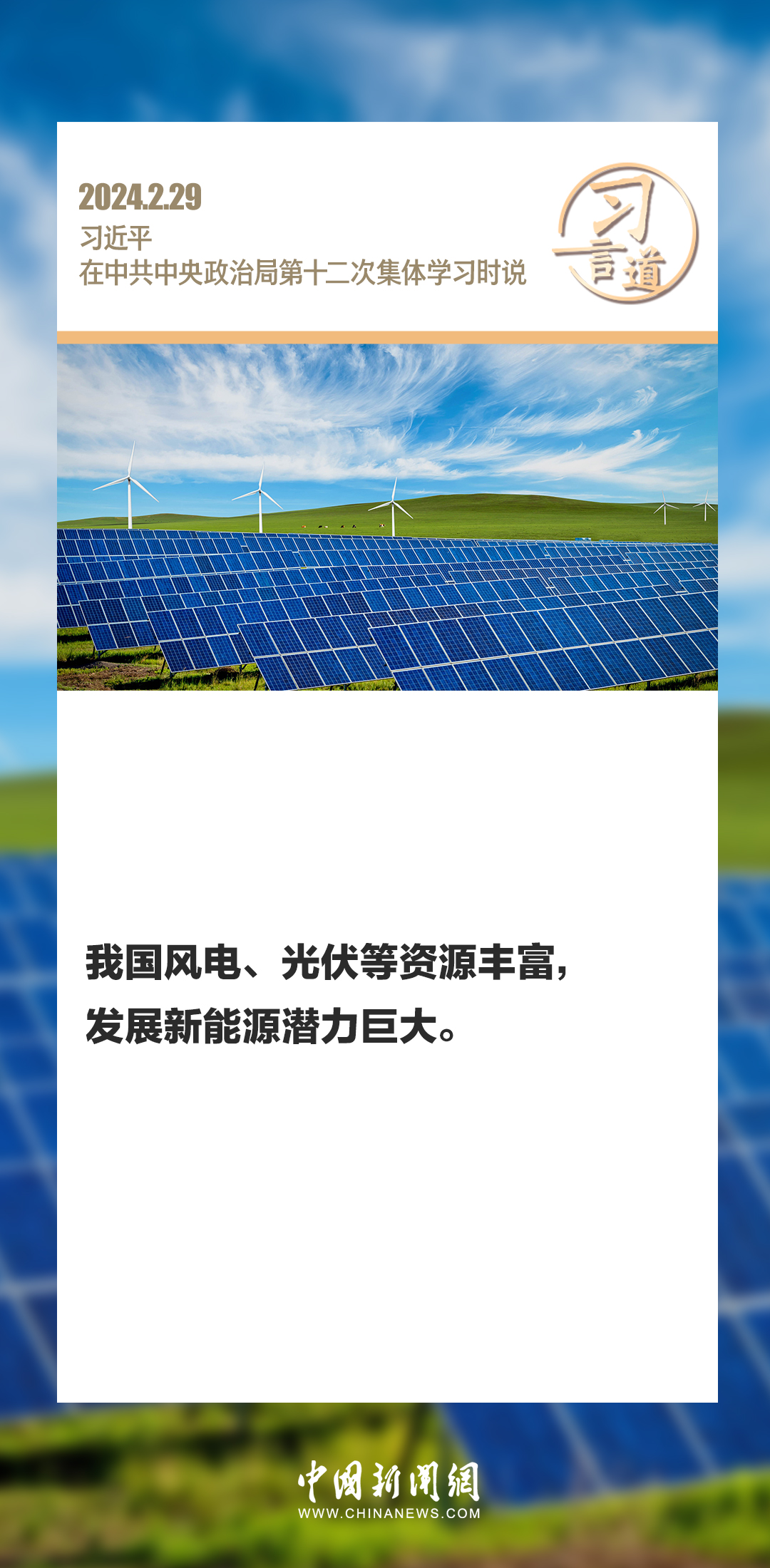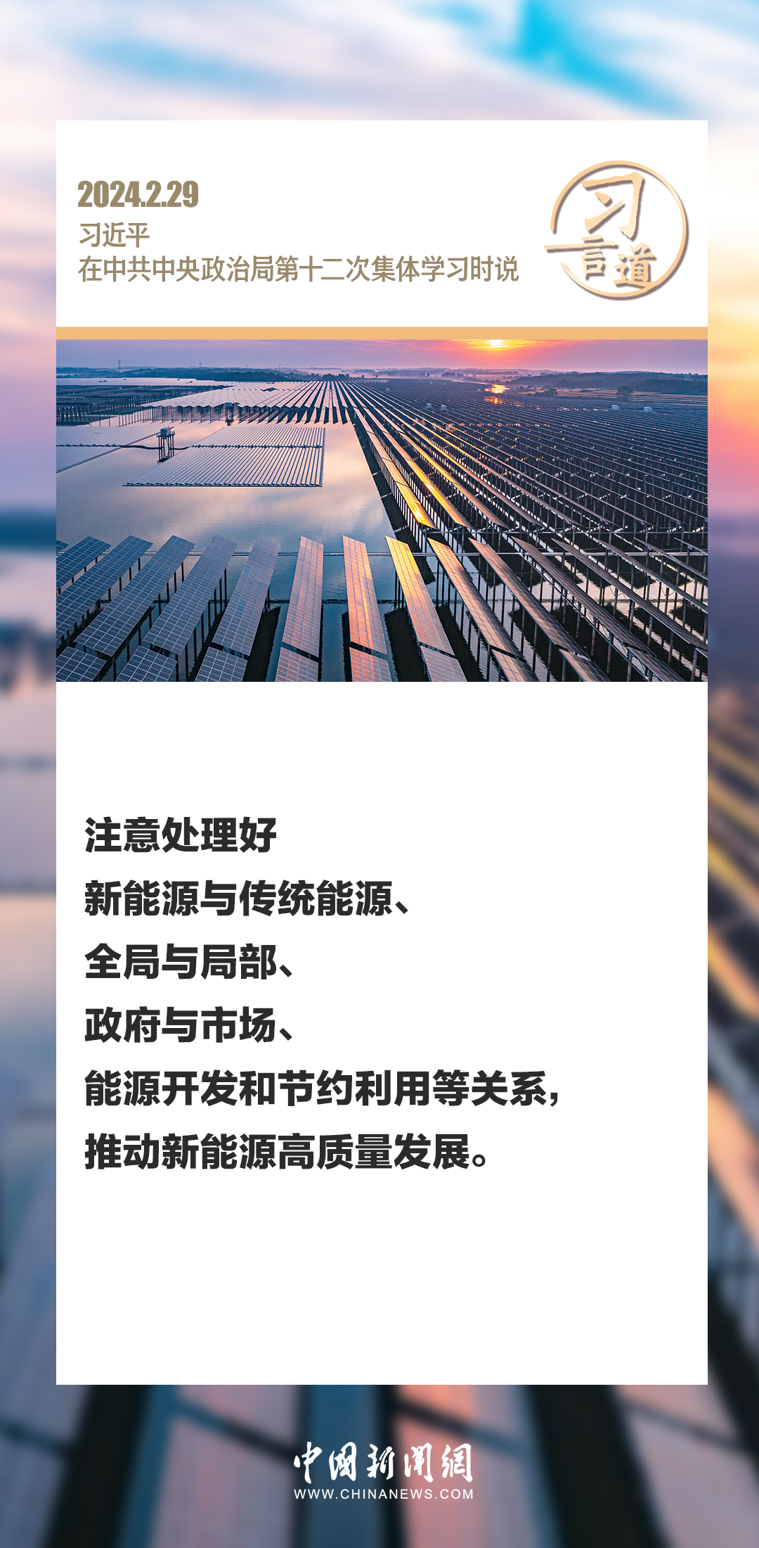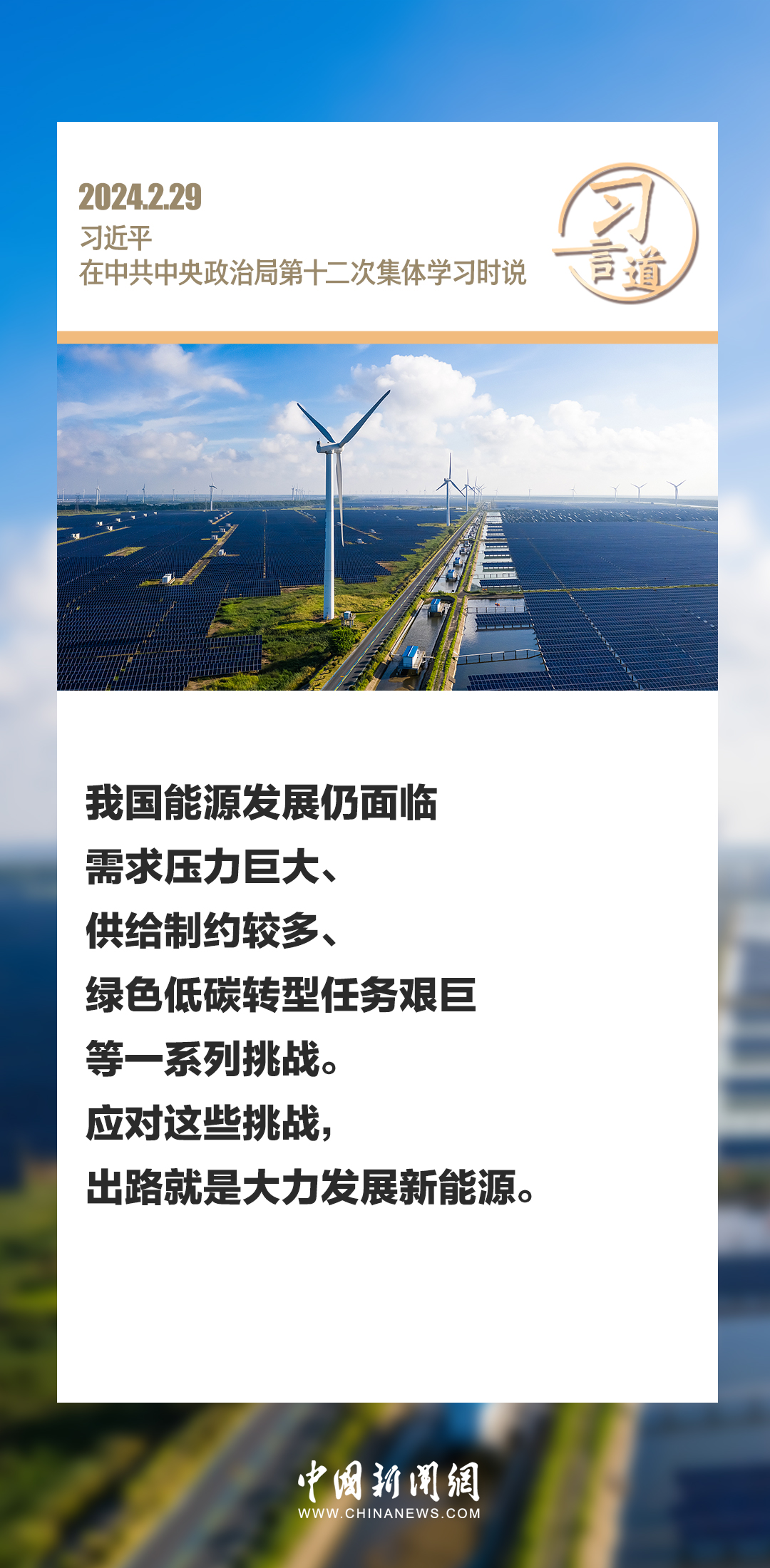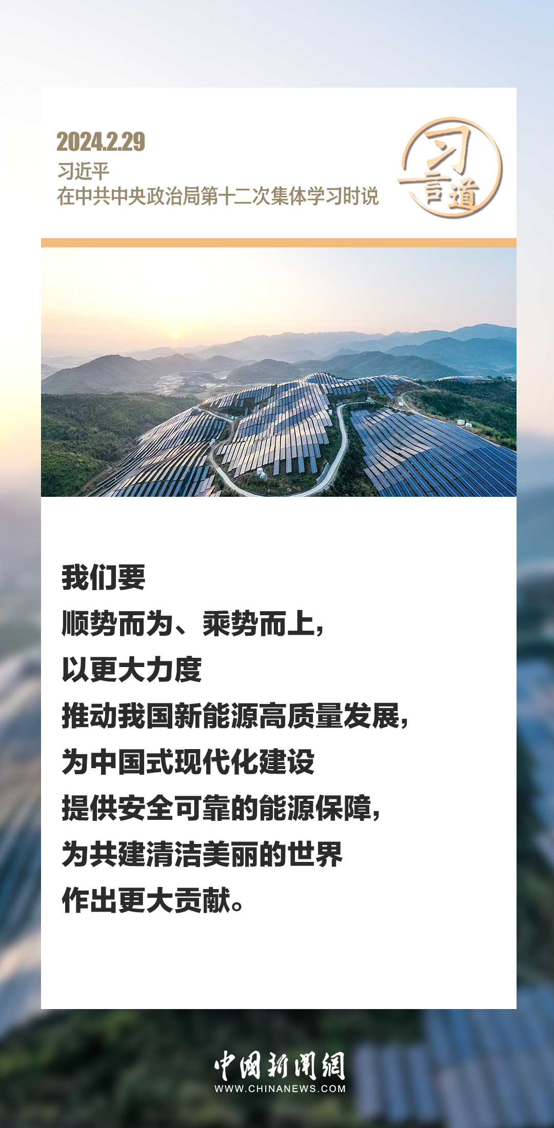 中共中央政治局2月29日下午就新能源技术与我国的能源安全进行第十二次集体学习。中共中央总书记习近平在主持学习时强调——