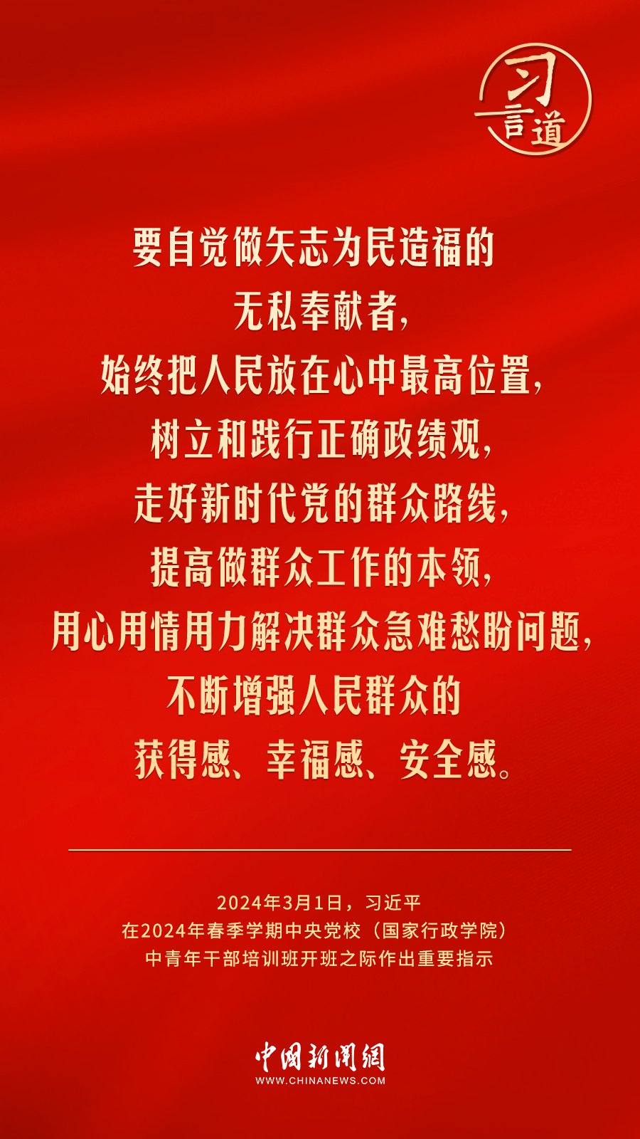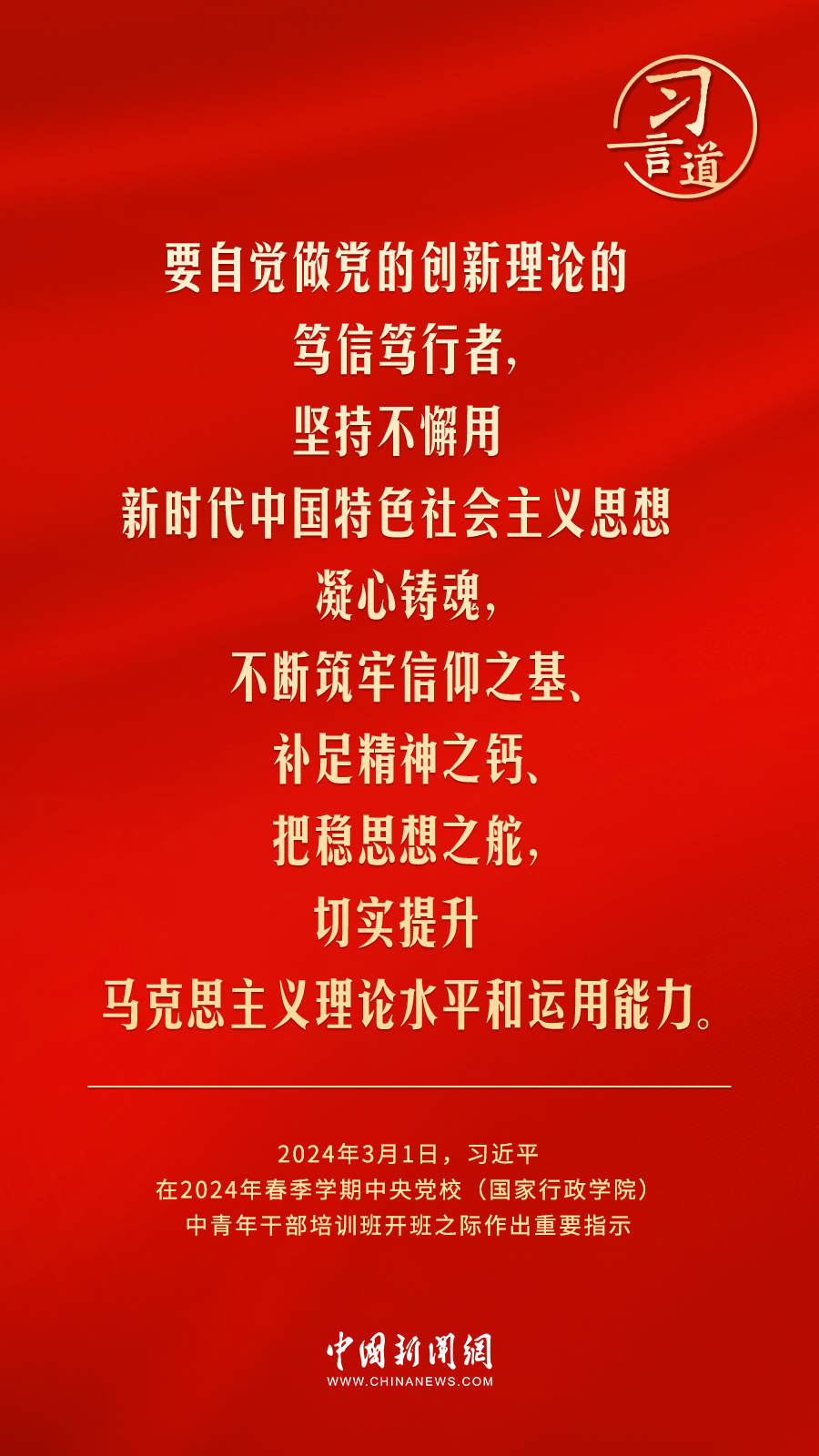 2024年春季学期中央党校(国家行政学院)中青年干部培训班3月1日上午在中央党校开班。中共中央总书记、国家主席、中央军委主席习近平作出重要指示,他强调——
