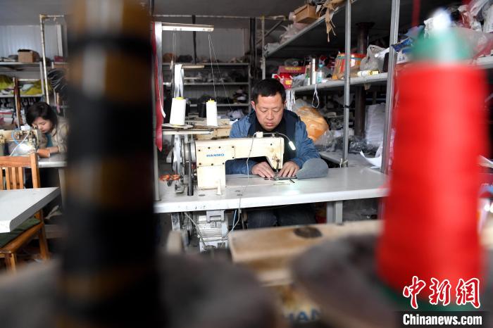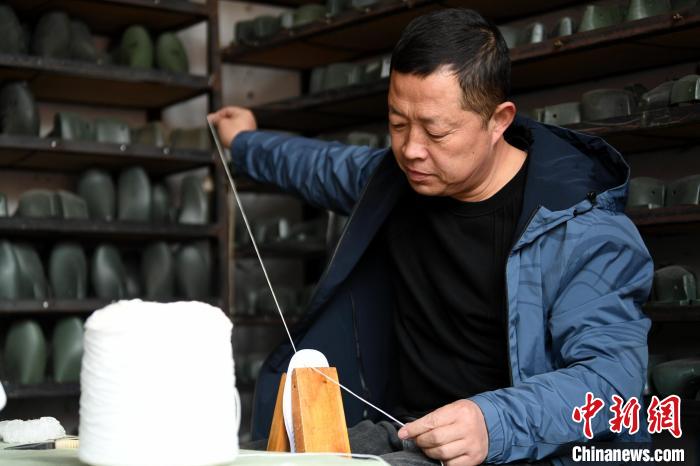 2月29日,杨西利正在缝制鞋帮。崔贤飞 摄