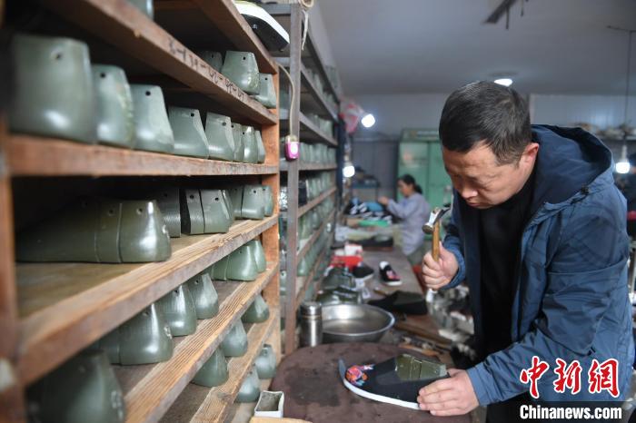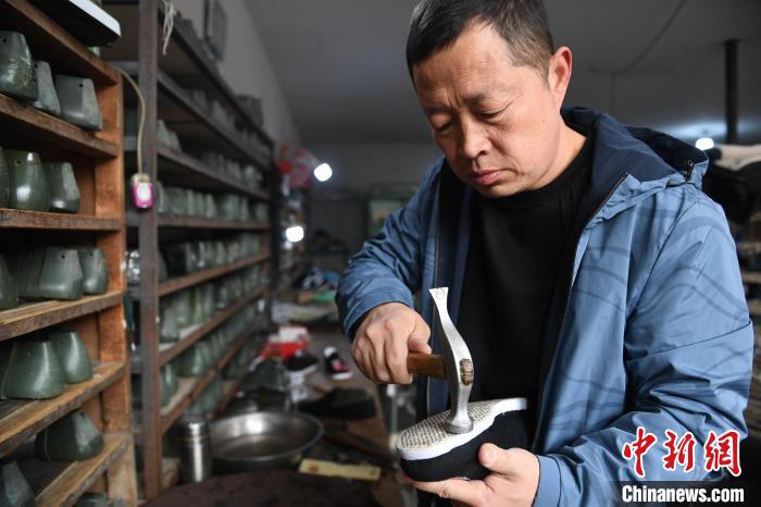 2月29日,杨西利正在翻鞋。崔贤飞 摄
