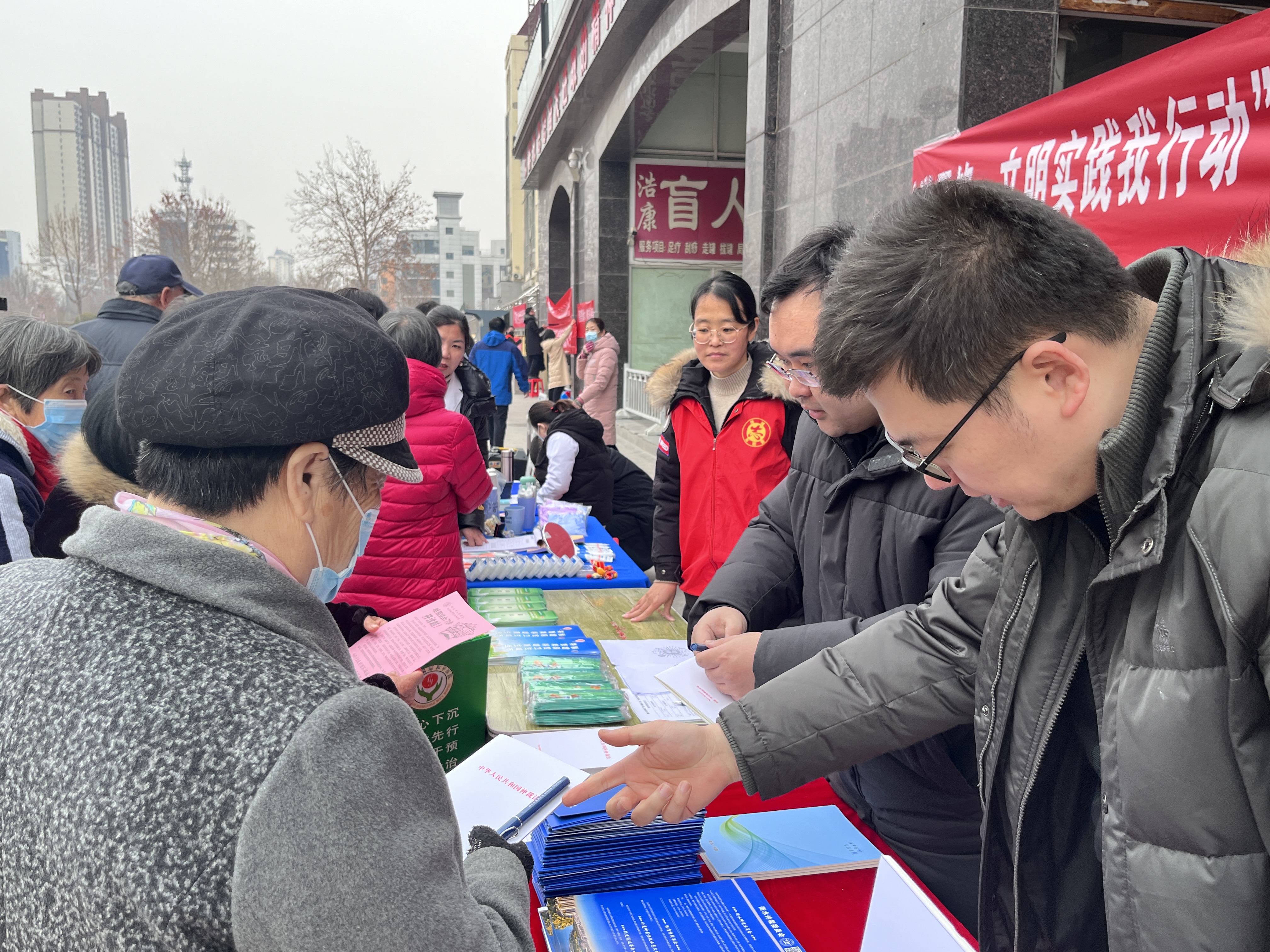 活动现场还设立咨询台,悬挂横幅标语,摆放展板,免费为居民提供咨询服务。