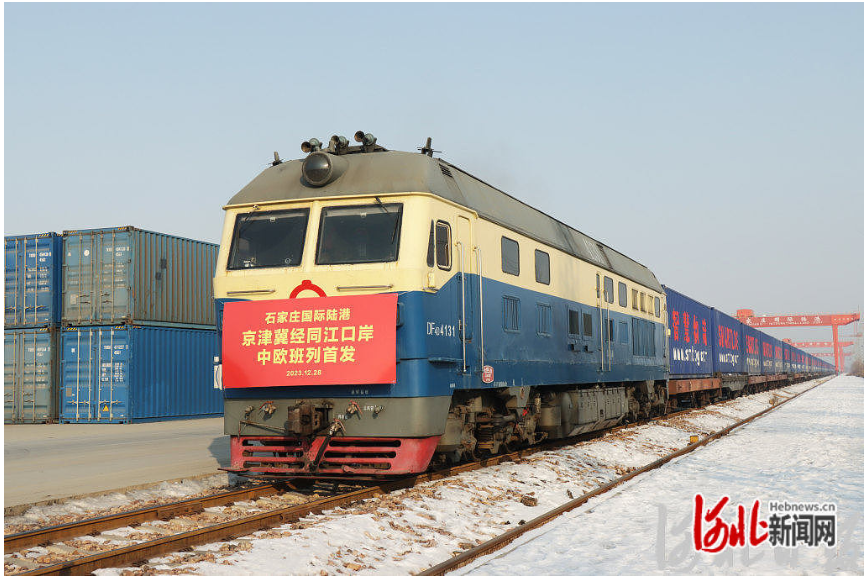2023年12月28日,京津冀首趟经由同江口岸出境的中欧班列从石家庄国际陆港发车。河北日报通讯员余陈军摄