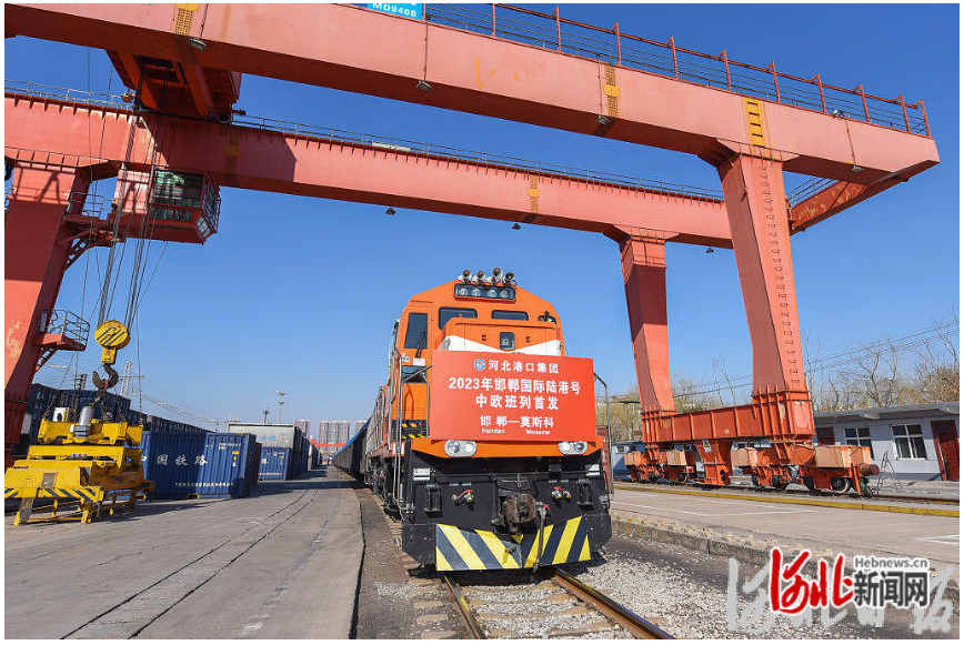 2023年1月30日,2023年邯郸首列中欧班列“邯郸国际陆港号”开行。河北日报通讯员冯一芮摄