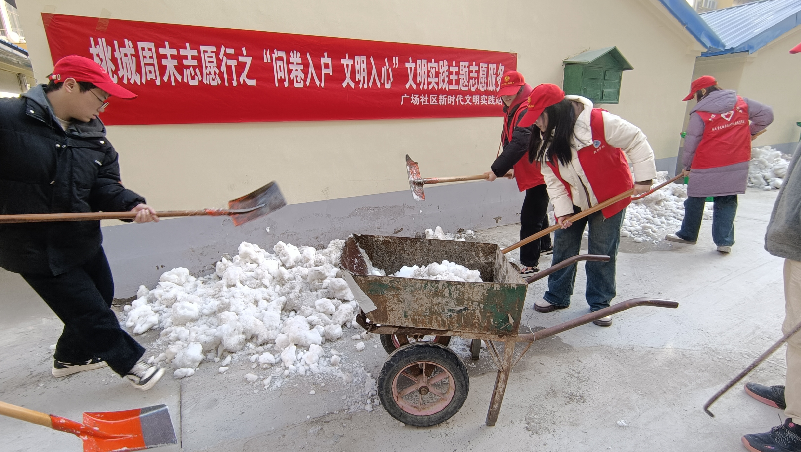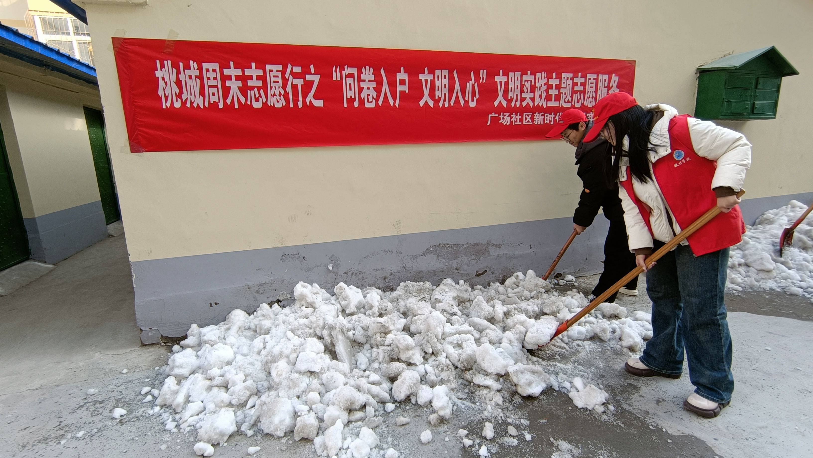 “您好,您填写‘文明衡水 你我共建’问卷调查了吗?”在人民银行家属院,来自衡水学院数学与计算机学院的学生志愿者张文倩手拿入户问卷调查表,详细地和居民讲解如何填写。同时,志愿者们在小区内同步开展文明养犬宣传活动,让养犬人牢牢牵紧“文明绳”,自觉争当文明“养犬人”。在农业局小区,衡水学院数学与计算机学院的学生志愿者找来铁锹、扫把、小铲子等工具,开展环境卫生“大扫除”,对地面积雪垃圾、楼道小广告等居住环境问题进行了集中清理整治。