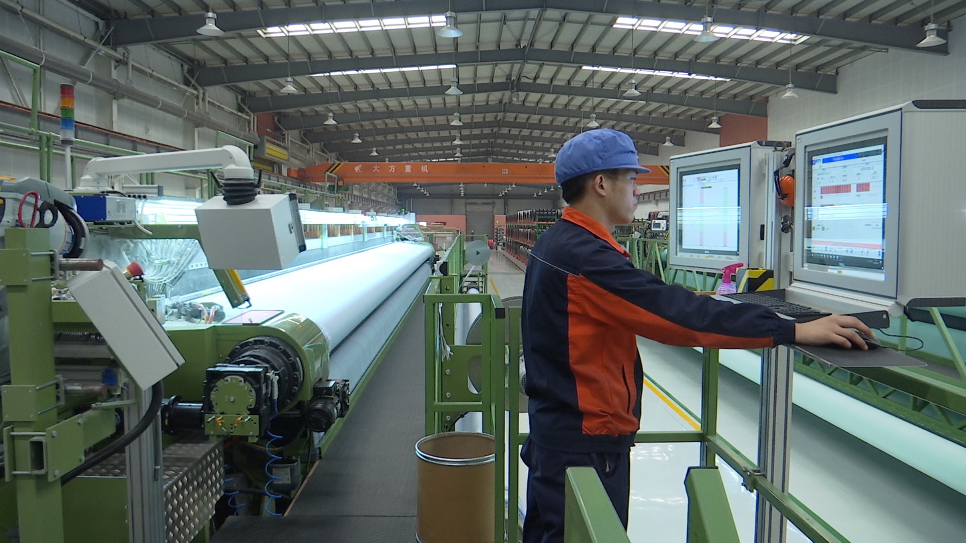 工人操作织机。赵玺 摄