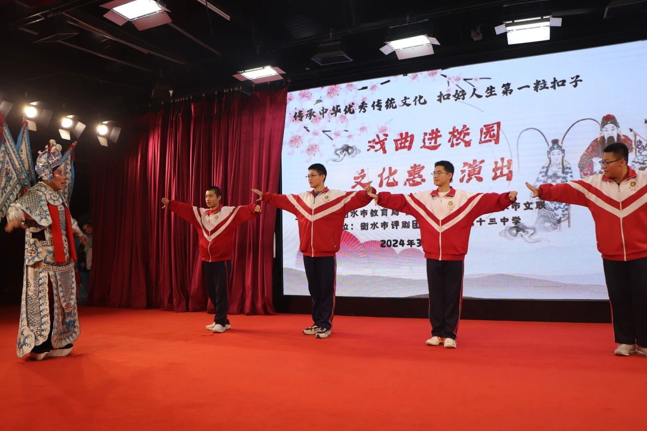 韵味十足的唱腔、惟妙惟肖的表演。3月6日,市评剧团优秀戏曲演员走进衡水市第十三中学,与师生零距离互动,传播传统戏曲文化。