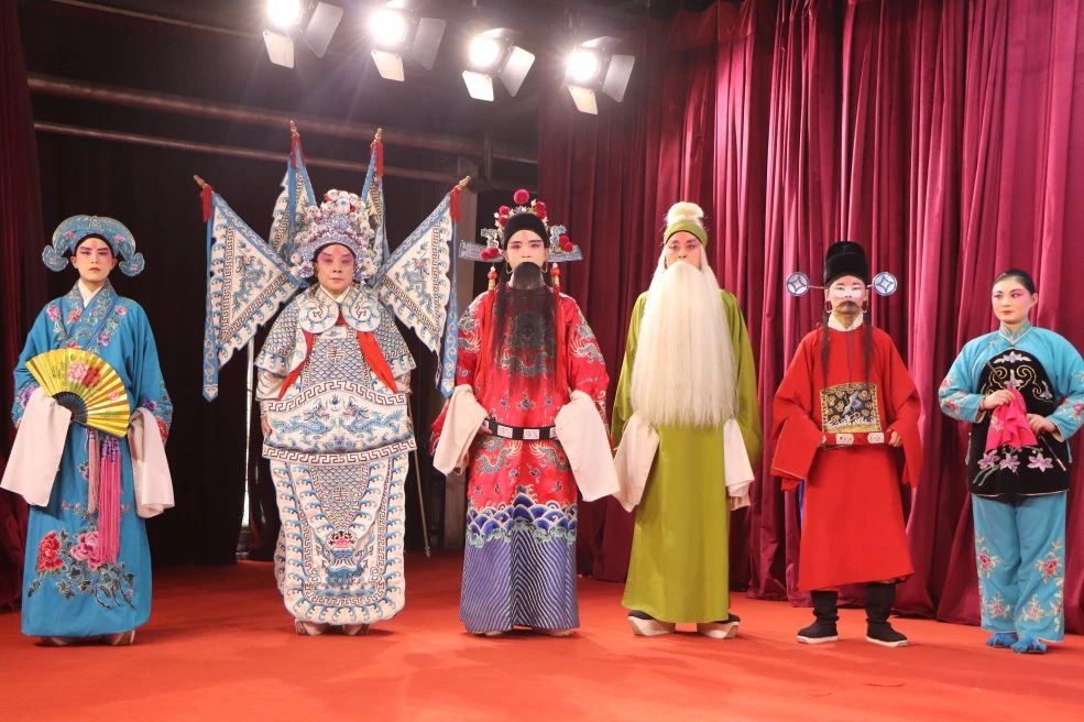 演出间隙,演员们为师生介绍了各曲种的发展历史和脉络,并邀请同学们上台穿戴戏曲服饰、学习戏曲动作,让他们在趣味互动中感受戏曲文化的魅力。