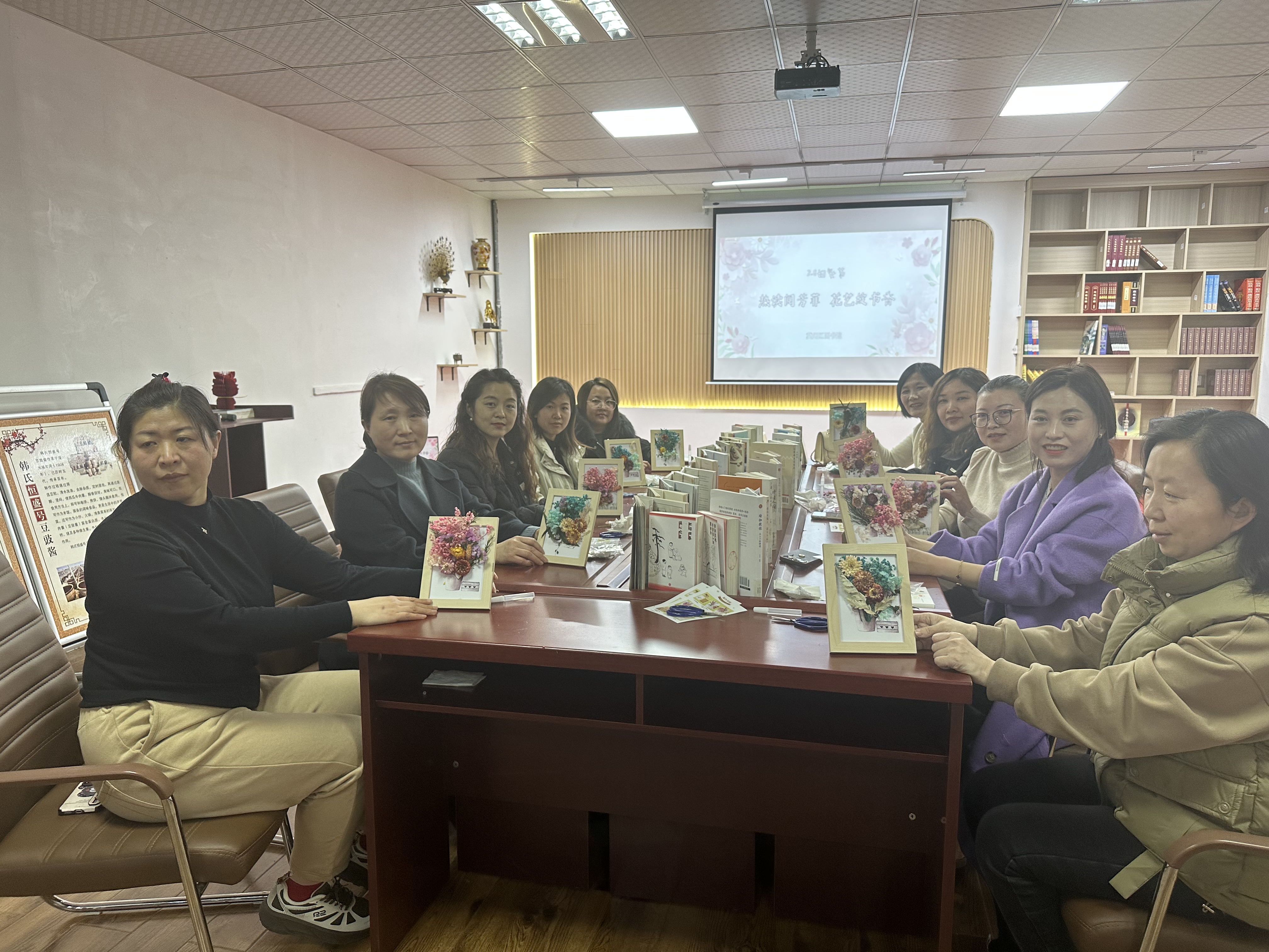 3月8日,冀州区图书馆举办了“热读阅芳菲,花艺绽书香”妇女节读书花艺沙龙活动。工作人员首先从修剪花材、色彩搭配、整体布局以及如何制作等方面对参加活动的人员进行细致讲解。随后,大家用自己灵巧的双手和独特的构思,通过将一支支普普通通的花材修剪、搭配,完成了一个个配色清雅、花型各异的永生花相框作品。现场一片欢声笑语,气氛温馨和谐,让女性朋友们在感受美、欣赏美、创造美的过程中度过了愉快的节日。