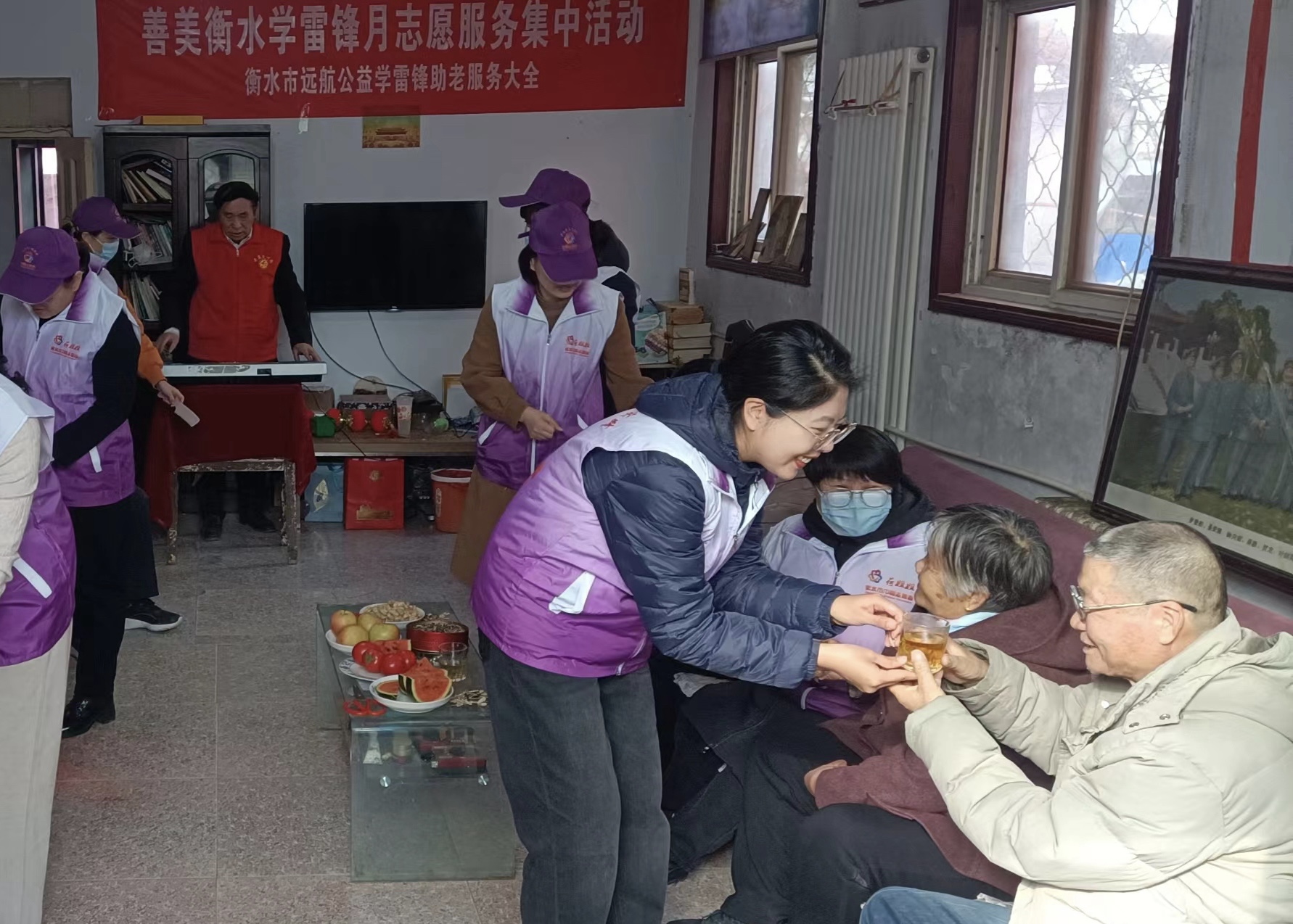 志愿者们用实际行动践行着雷锋精神。他们拉着老人的手,亲切地与老人们进行交谈,还为院里的孤寡老人、残疾人及孤困儿童义务剪发、按摩,宣传医疗常识,讲解反诈知识。