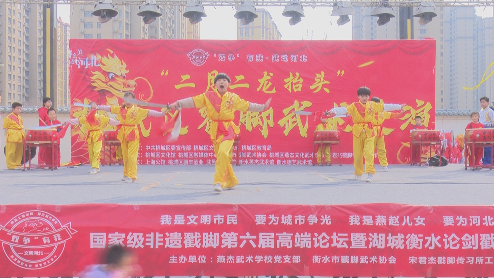 3月10日,衡水市桃城区戳脚武术展演在市区上海公馆广场举办。此次活动旨在弘扬中华武术精神,传承和展示桃城区独特的戳脚武术文化,观众和武术爱好者们齐聚一堂,共享文化盛宴。