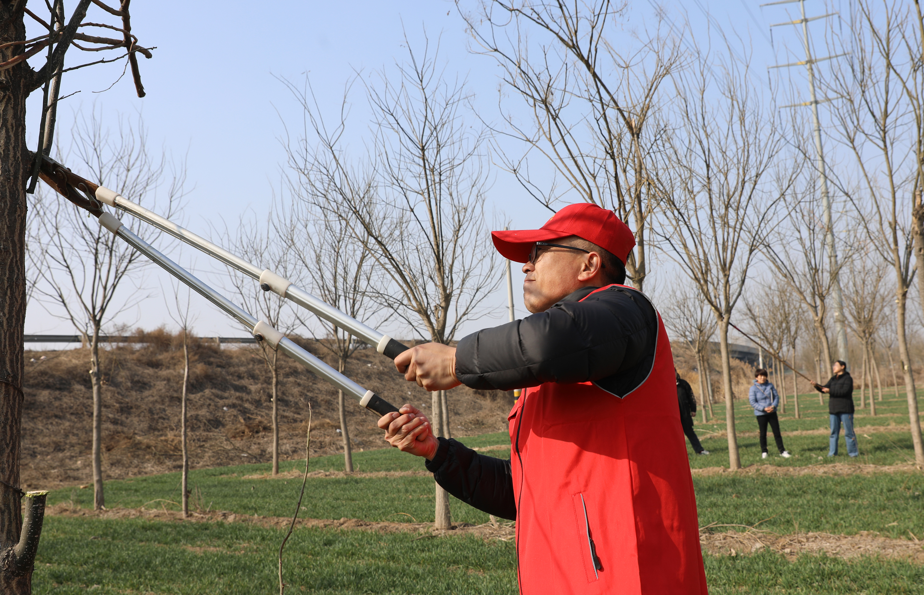 植树活动现场分成植树组、修剪组等三个小组。植树组有的挖坑,有的扶,有的浇水,分工明确,配合默契、衔接有序。经过大家的不懈努力,新栽好的树苗迎风而立,生机盎然。“修剪枝条,首先要注意去弱留强,将病虫枝、干枯枝剪掉……”在修剪组技术人员指导下,组员相互协作,严格按照标准进行修剪,在保障树木健康生长的同时,使树木更具有观赏价值。“去年的今天大家亲手为美丽衡水植下的‘红色文化林’,现如今正茁壮成长,每个人都体会到了劳动的成就感,也提升了大家的责任意识。”据衡水市红色文化研究会会长刘义沛介绍,红色文化林是以红色文化为核心的党性教育主题防护性景观休闲林地。在红色文化中学习,在劳动中体验生活,不断改变自己,不断进步,不断升华。