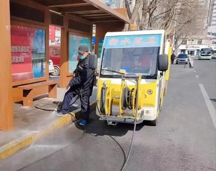 市环卫中心紧抓天气晴好、气温回升的有利条件,因“时”制宜,“洗扫”“吸扫”全覆盖,利用每天正午时段出动洗扫车、雾炮车、洒水车等机械设备,对市区道路进行不间断湿扫、洗扫作业。在早晚气温较低时段,出动吸尘车、洗扫车对市区所有主干道进行深度吸扫作业,清除路面浮尘浮灰。按照“横向到边、纵向到底”的原则反复清理道路积污、积尘,确保路面洁净。
