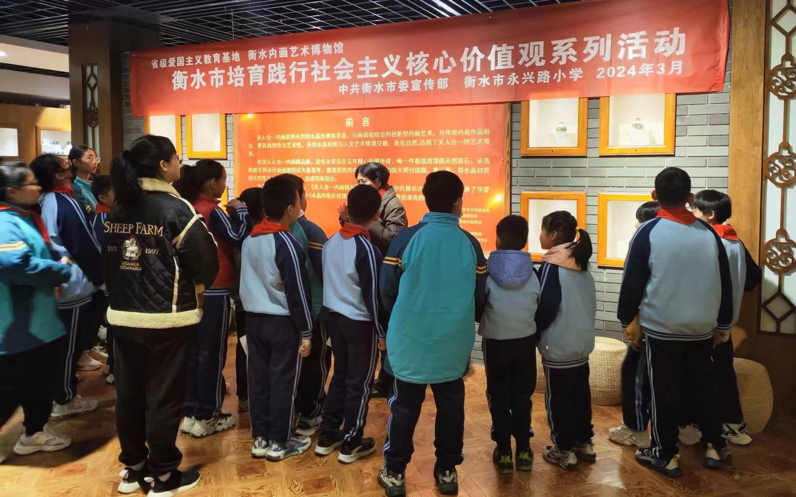 3月12日,由市委宣传部主办的“探寻衡水非遗 传承优秀文化”培育践行社会主义核心价值观活动在省级爱国主义教育基地——衡水内画艺术博物馆举行,当天,市永兴路小学优秀师生代表到馆研学,了解衡水本土优秀传统文化,不断增进对中华民族、中华文化的认同,从中汲取中国智慧,持续厚植爱国情怀。