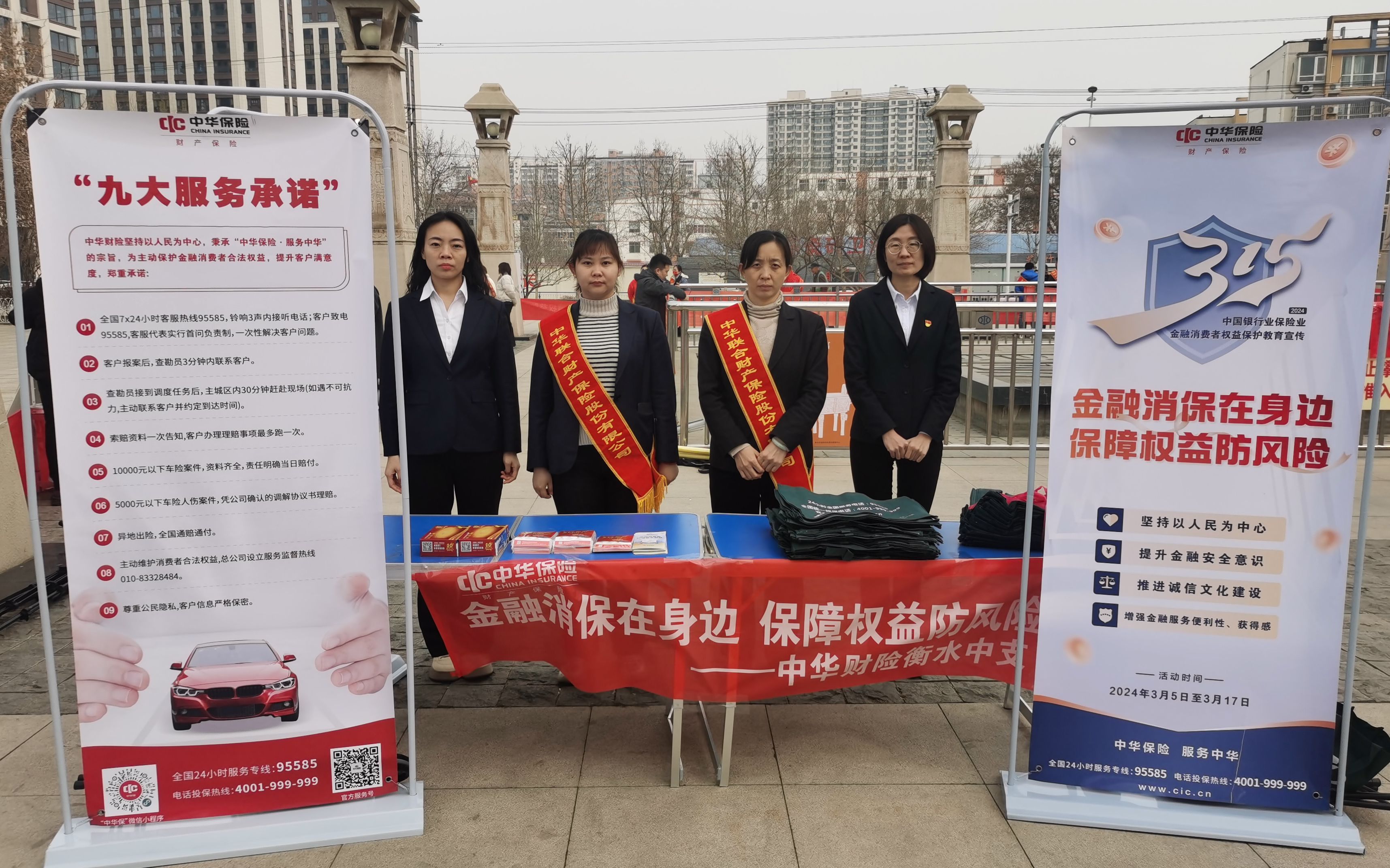 在2024年“3·15”国际消费者权益日到来之际,为进一步做好消费者权益保护和教育宣传工作,切实提升消费者金融素养,增强消费者风险防范意识,营造和谐健康的金融消费环境,3月13日上午,衡水市保险行业协会按照国家金融监督管理总局衡水监管分局和河北省保险行业协会相关要求,组织我市47家保险机构在萧何广场开展了以“金融消保在身边 保障权益防风险”为主题的“3·15”集中宣传活动。国家金融监督管理总局衡水监管分局普惠金融科、衡水市保险行业协会有关负责人现场指导宣传工作。