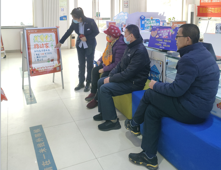 各营业厅设置老年人专席,耐心帮助老年客户学习手机基础软件的设置与应用,手把手教老年客户如何放心使用流量,并为老人下载、安装国家反诈中心APP,提高银发老人防诈反诈意识,切实解决老年客户在使用移动网络和智能手机时面临的困难和问题。要求自有渠道和社会合作渠道严格遵守五条禁令,对新入网用户100%实名登记,从源头保障用户通信安全,防范电信诈骗。安排网络工程师、装维人员上门为客户检测网络质量、排查网络问题,助力客户畅享高质量网络服务。