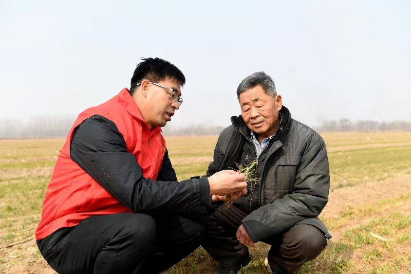 今年,码头镇李晋庄村振兴家庭农场种植了1000亩小麦。阜城县农业农村局高级农艺师李芳和种植大户戈春义唠起了小麦管理。