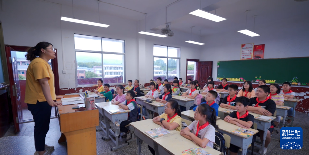 湖南第一师范毕业生秦叶仁在给湖南省宁乡市龙田镇的孩子们上课。(资料照片)