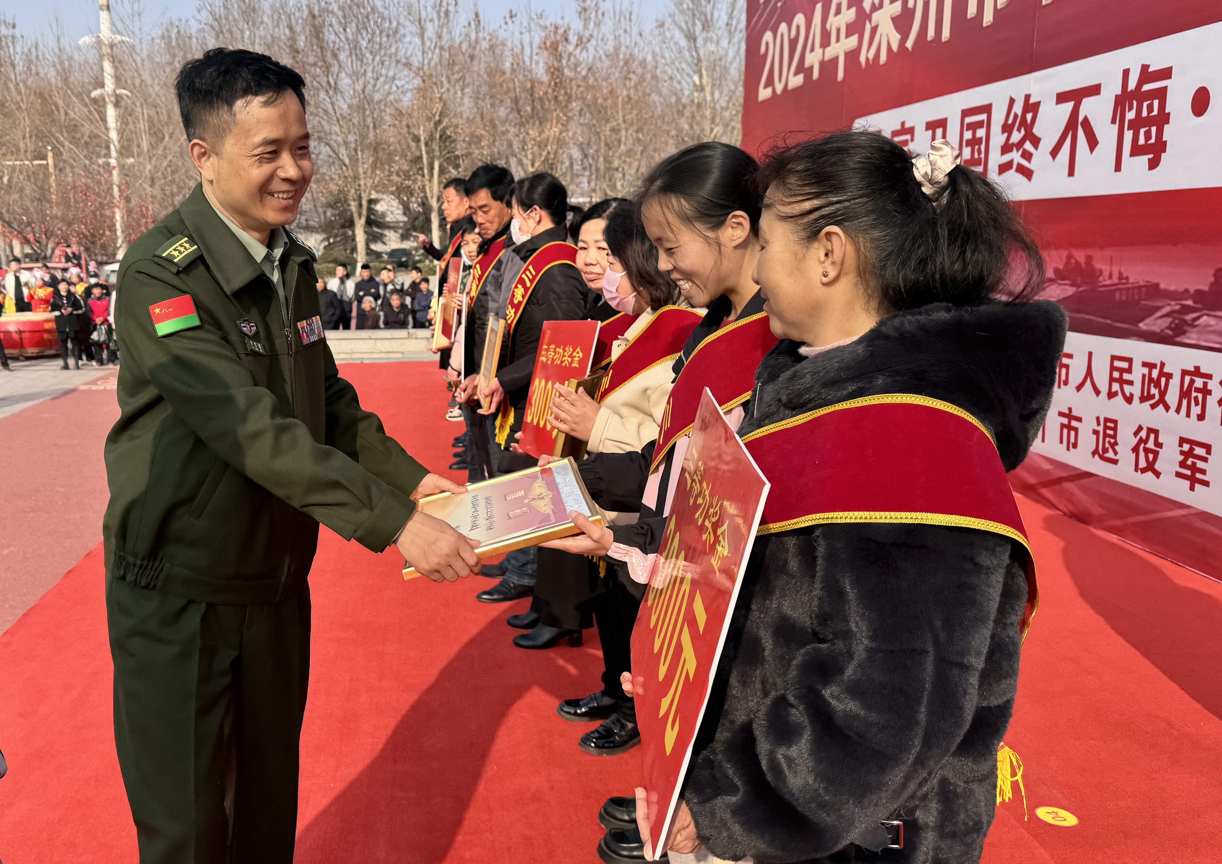 3月15日,深州市在锦绣广场举行2024年春季新兵入伍欢送仪式暨为荣立三等功的部分现役军人家属集中送立功喜报活动。