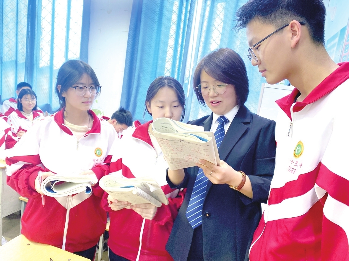 衡水十三中赵凤倩老师在给同学们答疑解惑。刘元 摄