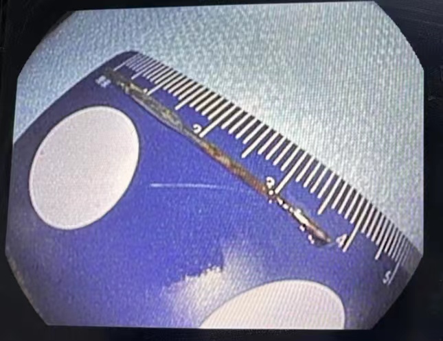 “这个钢针是圆柱形的,用异物钳夹圆柱形的东西,还是有一定难度,所以需要手要稳有力度,还需要有准确度,才能把钢针取出来。”内镜室主任王彦凤说。