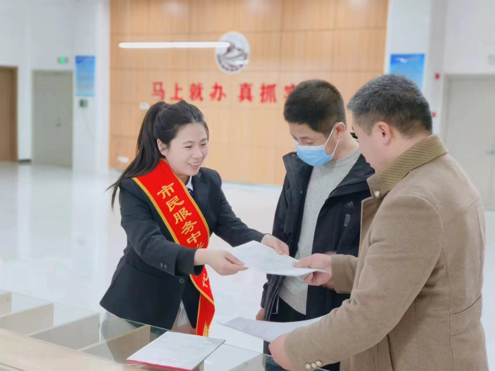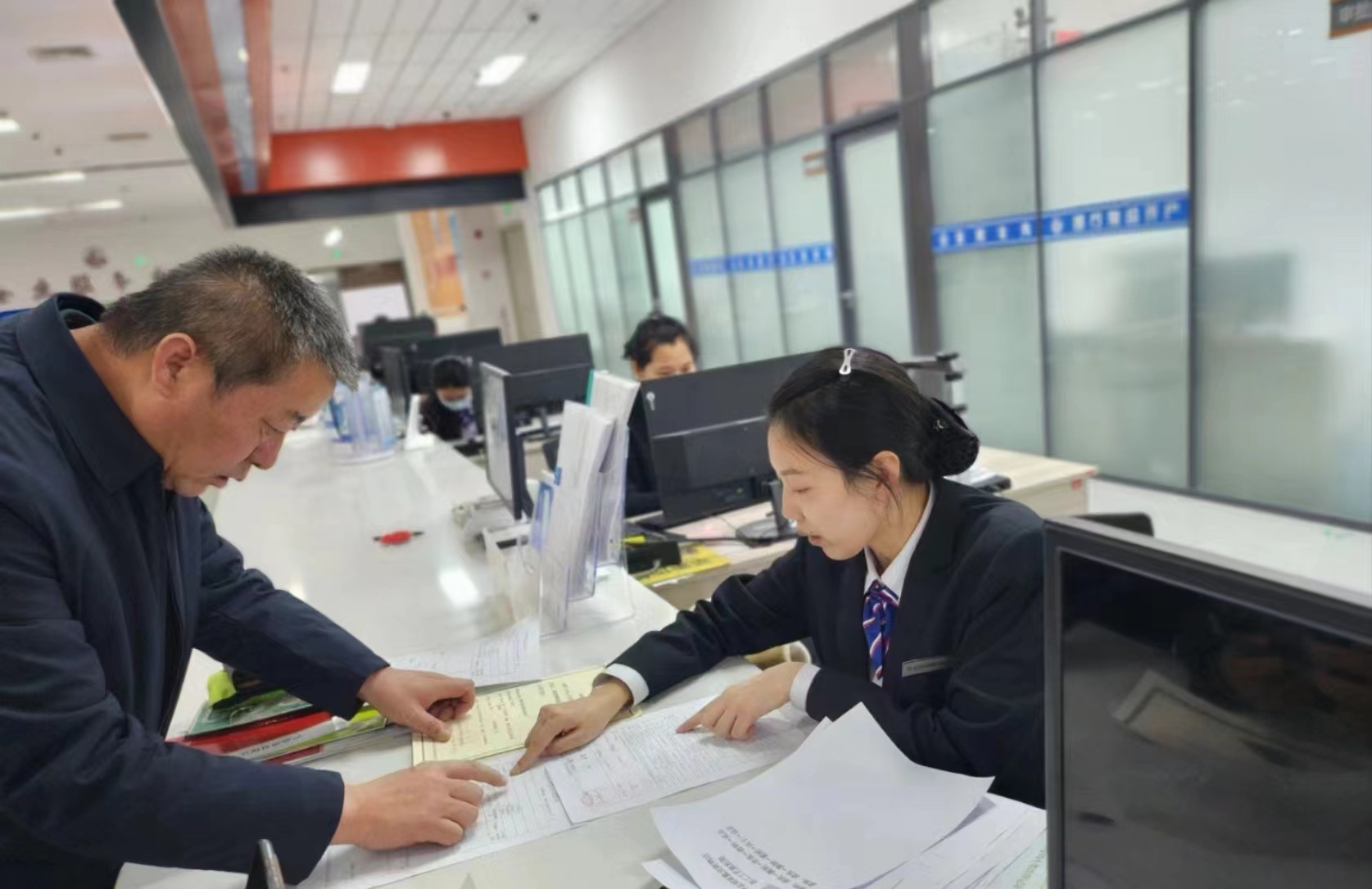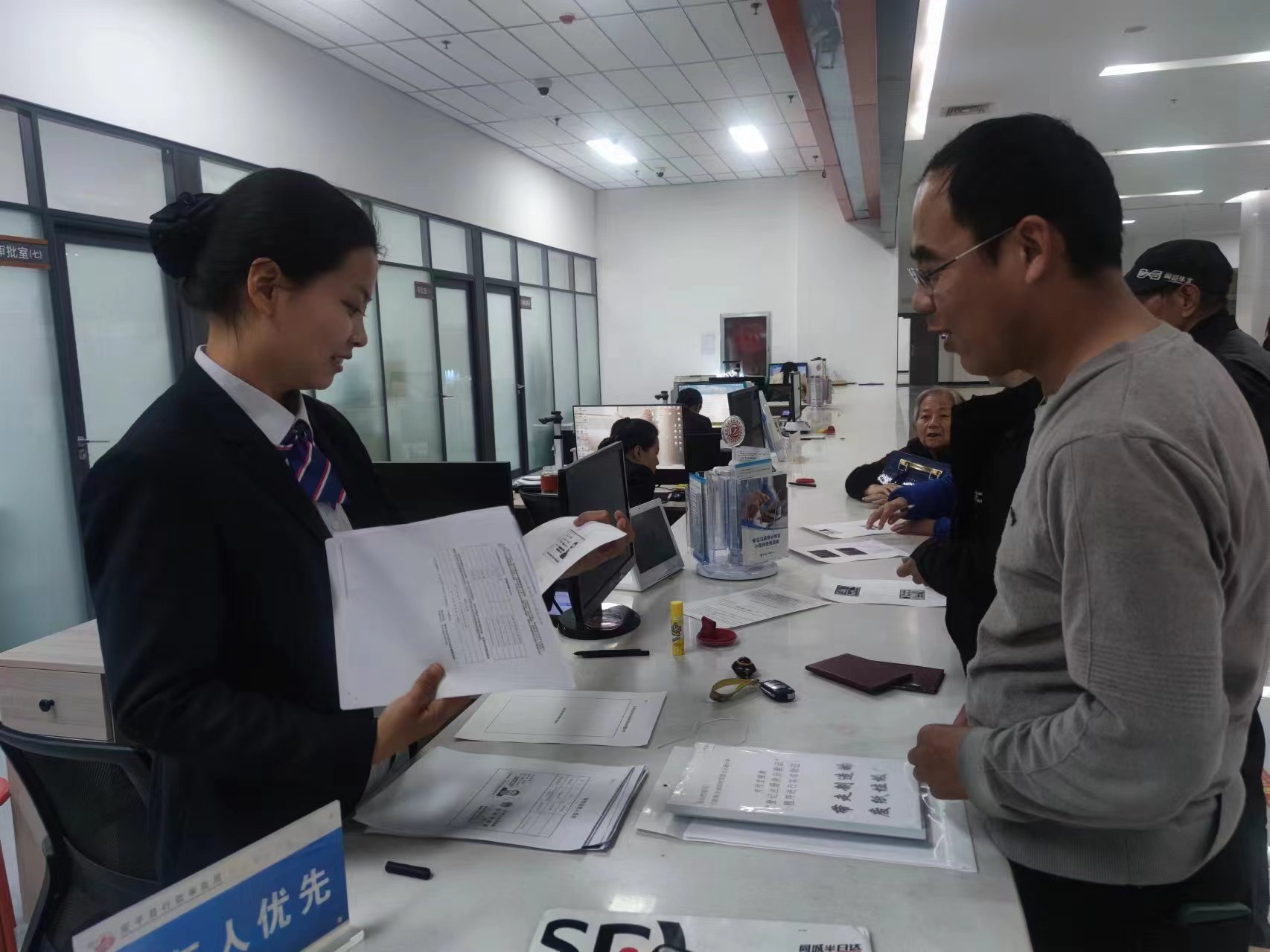 全程陪同办事人员办理手续。谢朝华 摄