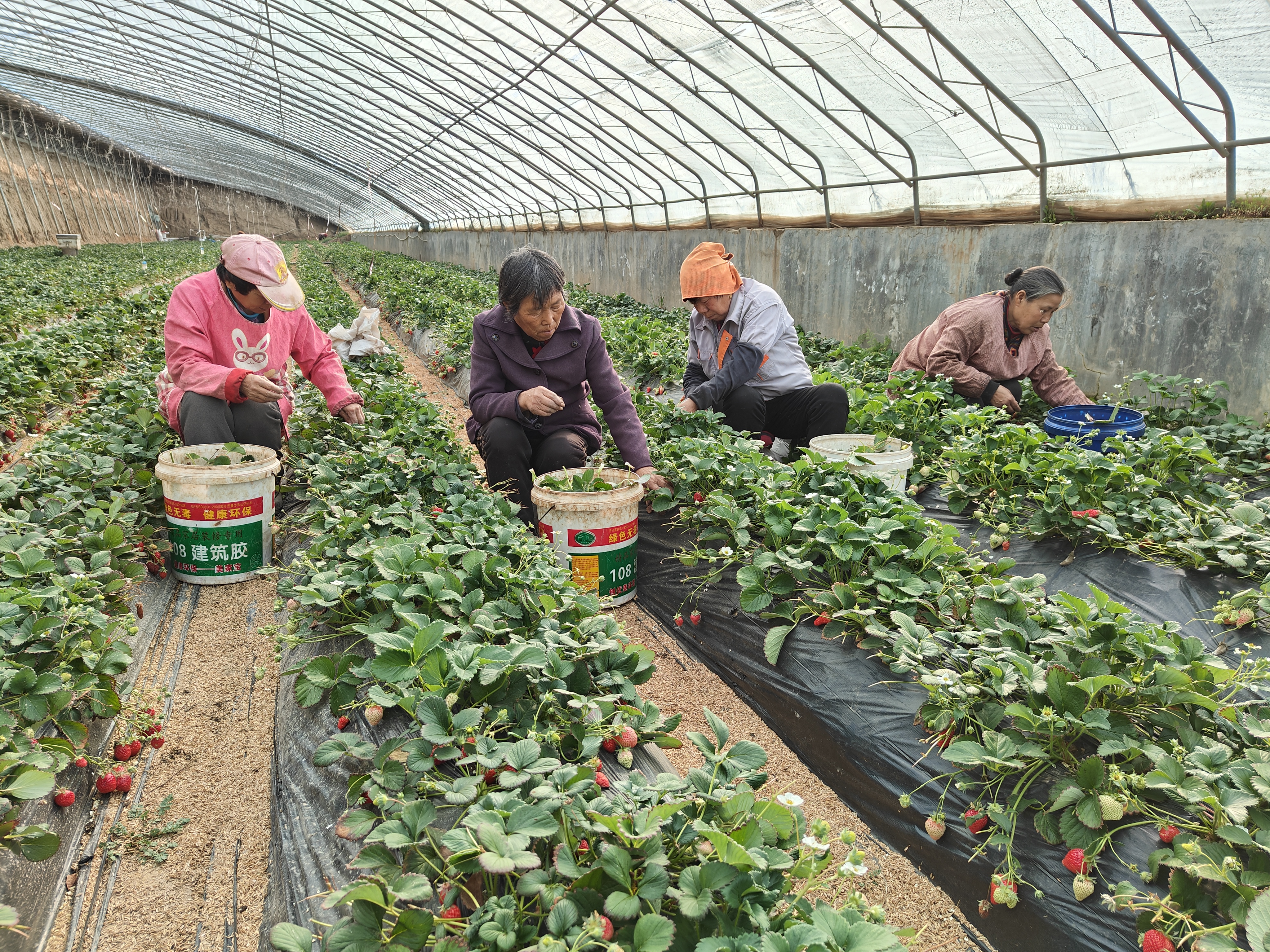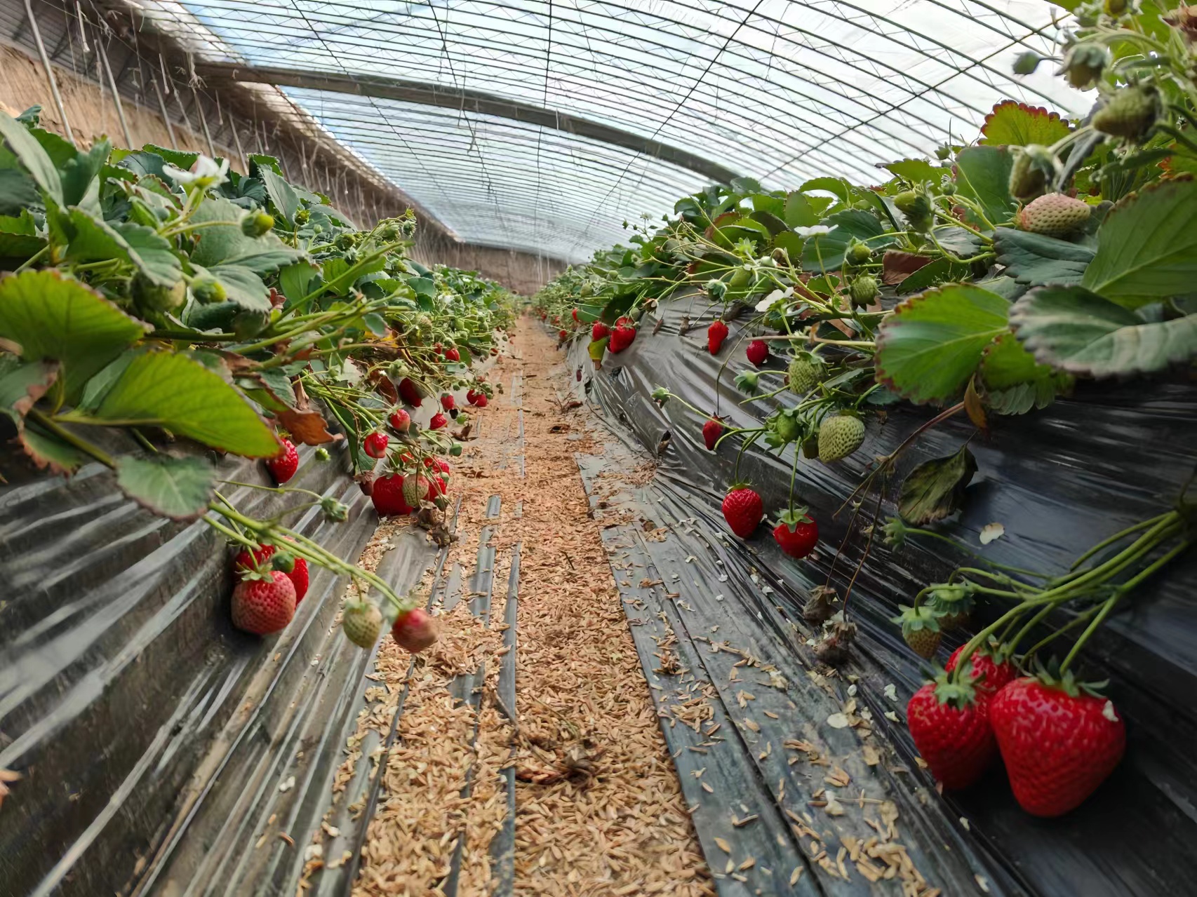 “这个棚里的草莓都是自主育苗的,与之前相比,颜色更鲜艳、口感更鲜甜。来!尝尝咱这草莓。”种植户支永振随手摘了颗大草莓说道。