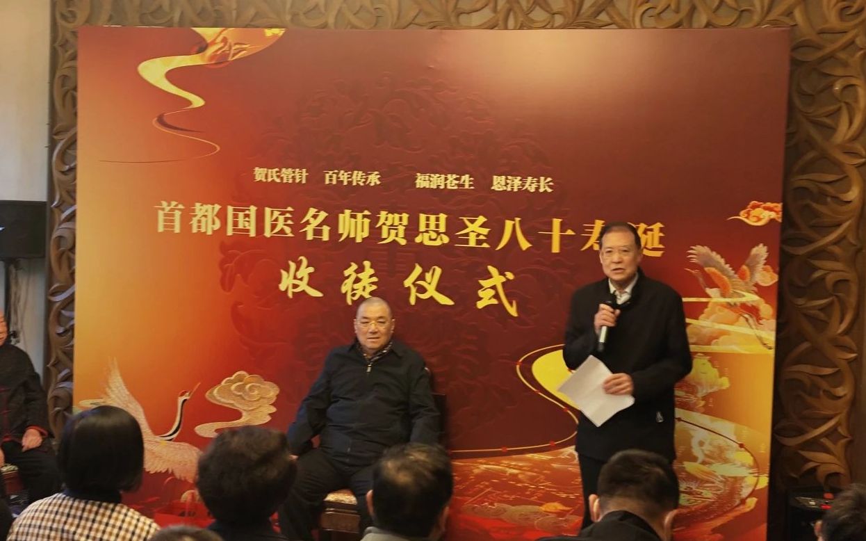 ▲ 北京针灸学会会长、首都国医名师王麟鹏教授主持收徒仪式