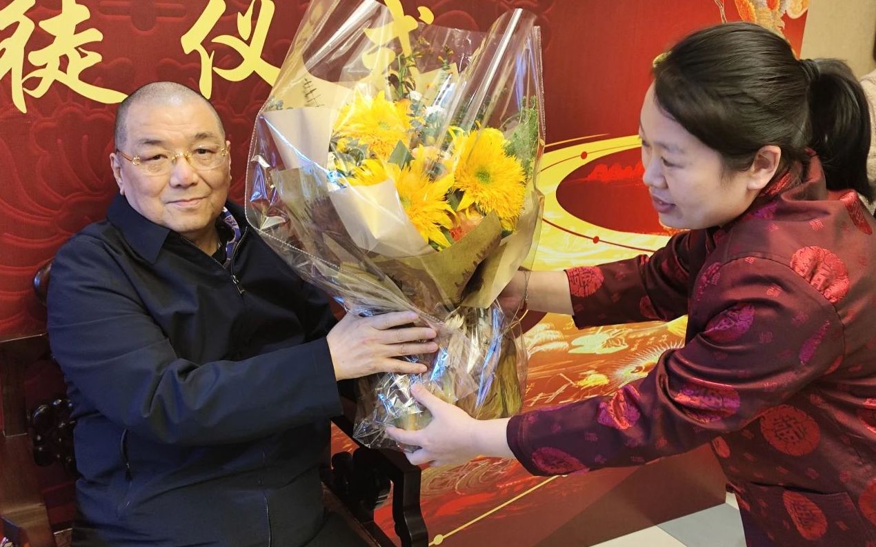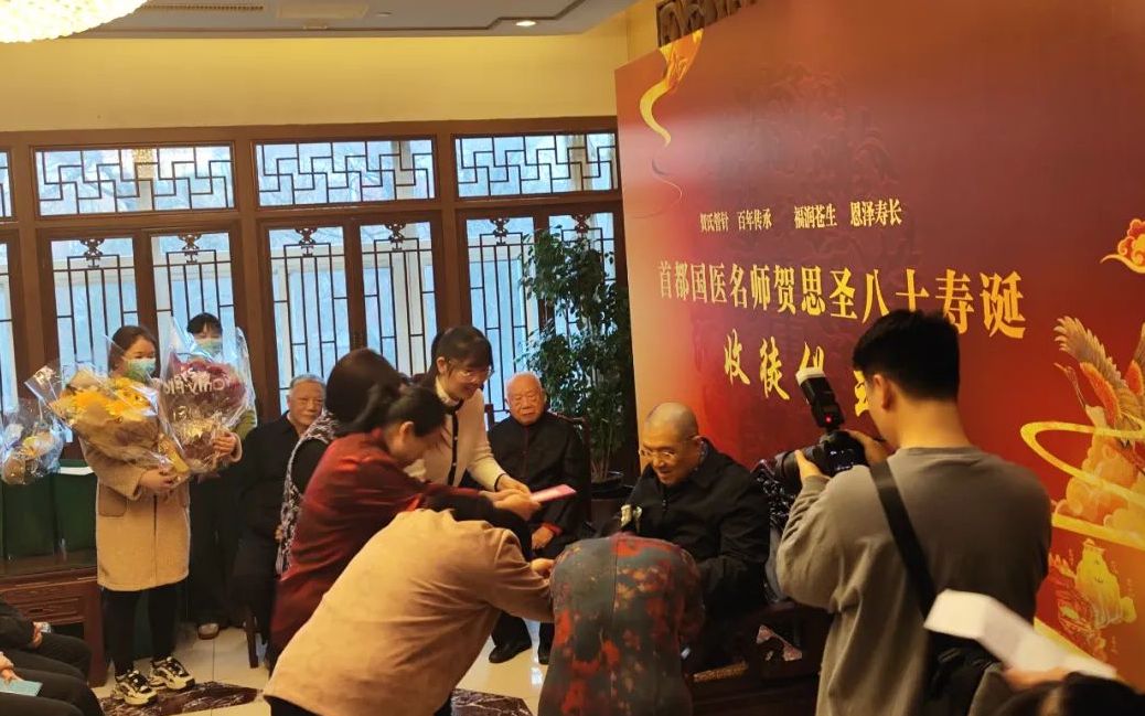 ▲ 衡水市中医医院针灸二科周颖拜师向首都国医名师贺思圣献花