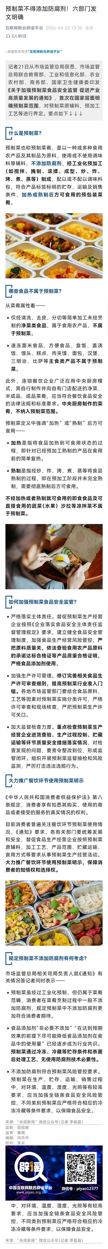 提示:预制菜不得添加防腐剂!六部门发文明确