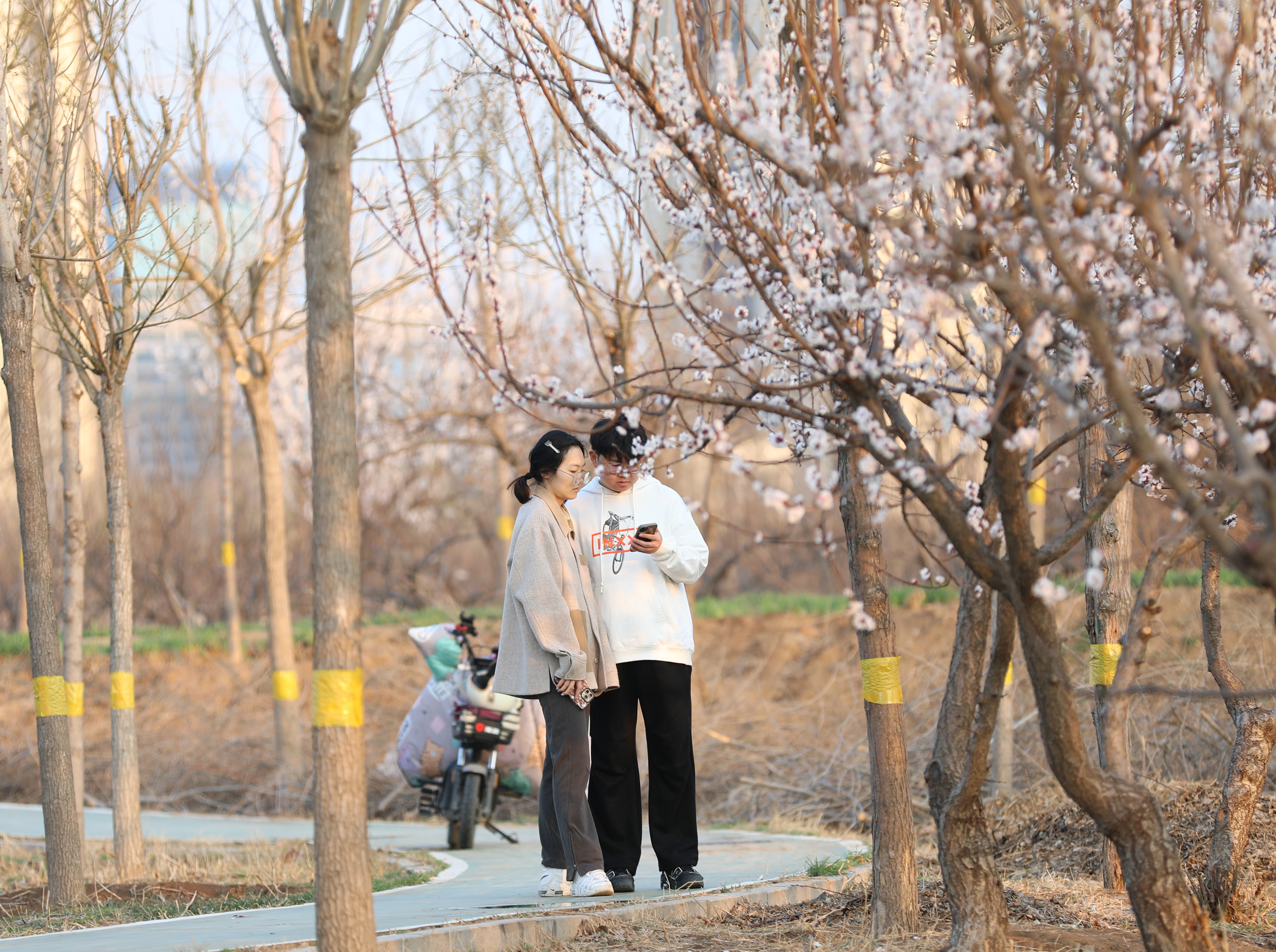 春花绽放,柳树吐绿,正是踏青赏花的大好时节。连日来,桃花、连翘、杏花等各色春花陆续盛开,不少市民趁着阳光明媚和家人朋友来到市区宝云公园,沿着园内步道一边散步、一边赏花,打卡春日里的美好景色。