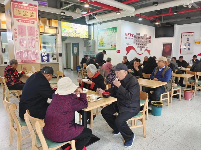 南文营社区所在的容东片区是雄安新区开发建设的先行区,也是新区首个大规模建成区,南文营社区安置了安新、容城两县回迁群众5000多人。时至饭点,南文营社区食堂慢慢热闹起来,家住附近的老人们结伴而来,大家一边品尝可口的饭菜,一边唠着家常,享受着幸福“食”光。