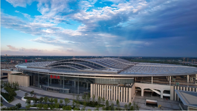 “千年大计”的开路先锋——雄安站(央广网记者 王伟倩 摄)