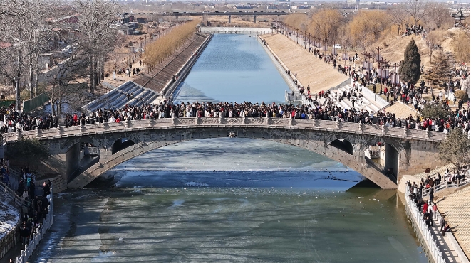 春节期间的赵州桥景区,热闹非凡(央广网记者 王伟倩 摄)