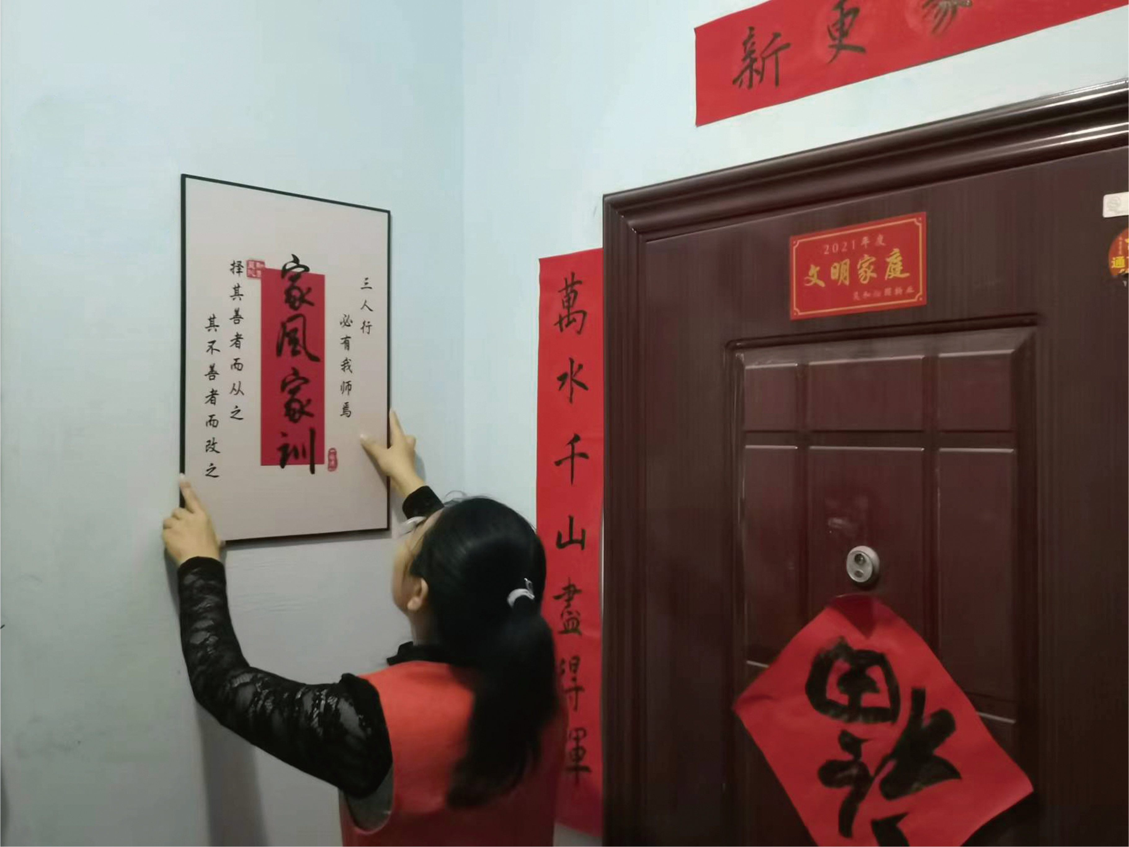 这种变化让张兵心里美滋滋的。他又因势利导,探索开展了“十家连心”活动,让“家”的概念一点点拓展延伸:第一步明家训,上门帮助居民明确家训,并制成墙画,目前已有200余户在门口张贴;第二步晒家风,梳理居民家风故事并协助撰写,列入家风馆存档并供学习参阅;第三步“十家连心”,通过建立课程体系,培训入户指导师指导开展家庭教育,影响带动更多家庭参与并从中受益。