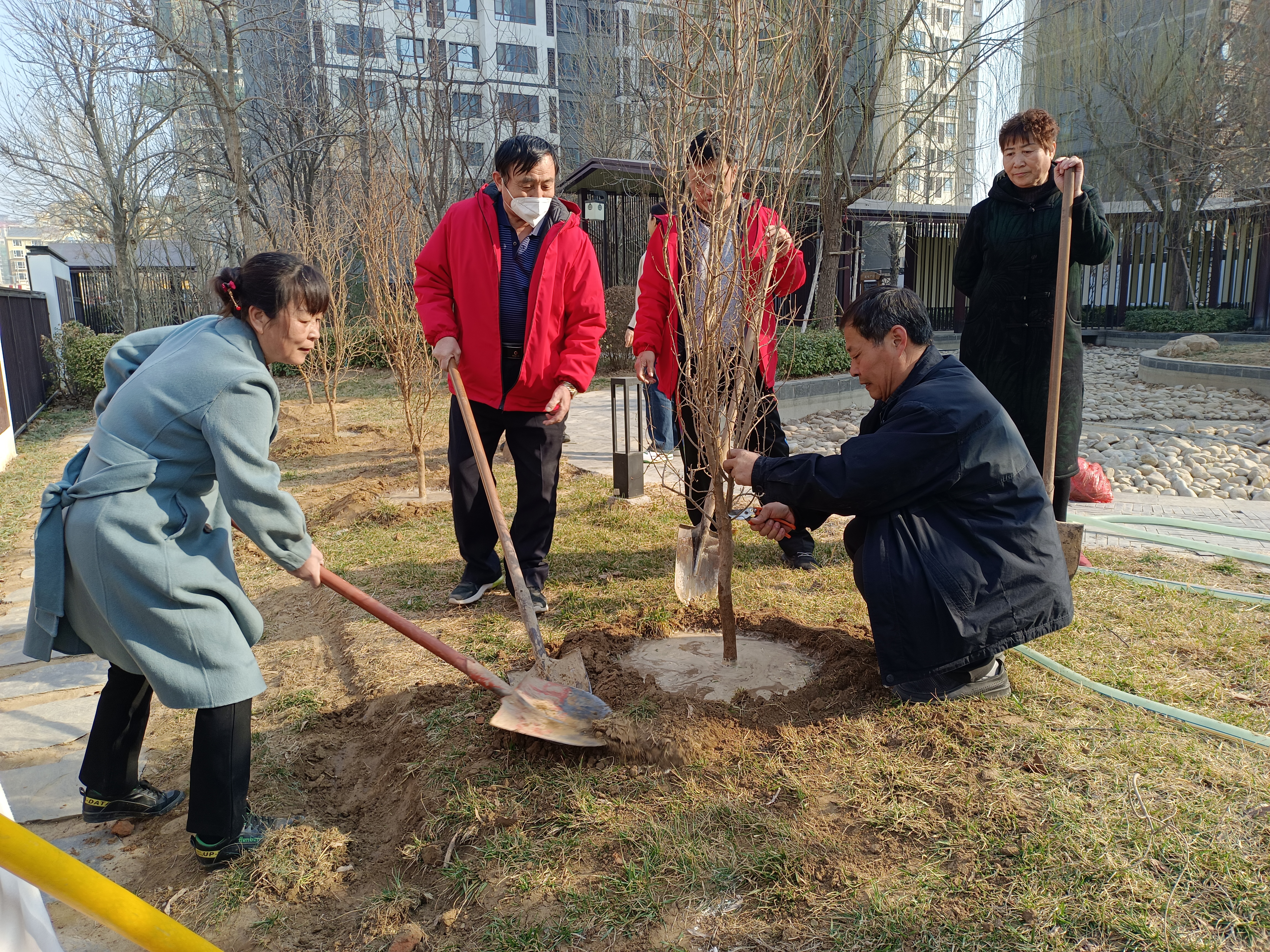 榜样的力量春风化雨。为深入宣传新时代典型,尊崇先进、学习先进,引导大家争做先进,小区里又修建了公德榜、公德林,选举好人好事进行公布,年底在公德榜雕刻留名,鼓励居民学习。3月12日,2023年度上榜的小区居民与家人一同来到公德林,种下了7株石榴树,并将写有自己姓名的荣誉牌挂在树上留念,让美德和小树一同成长。