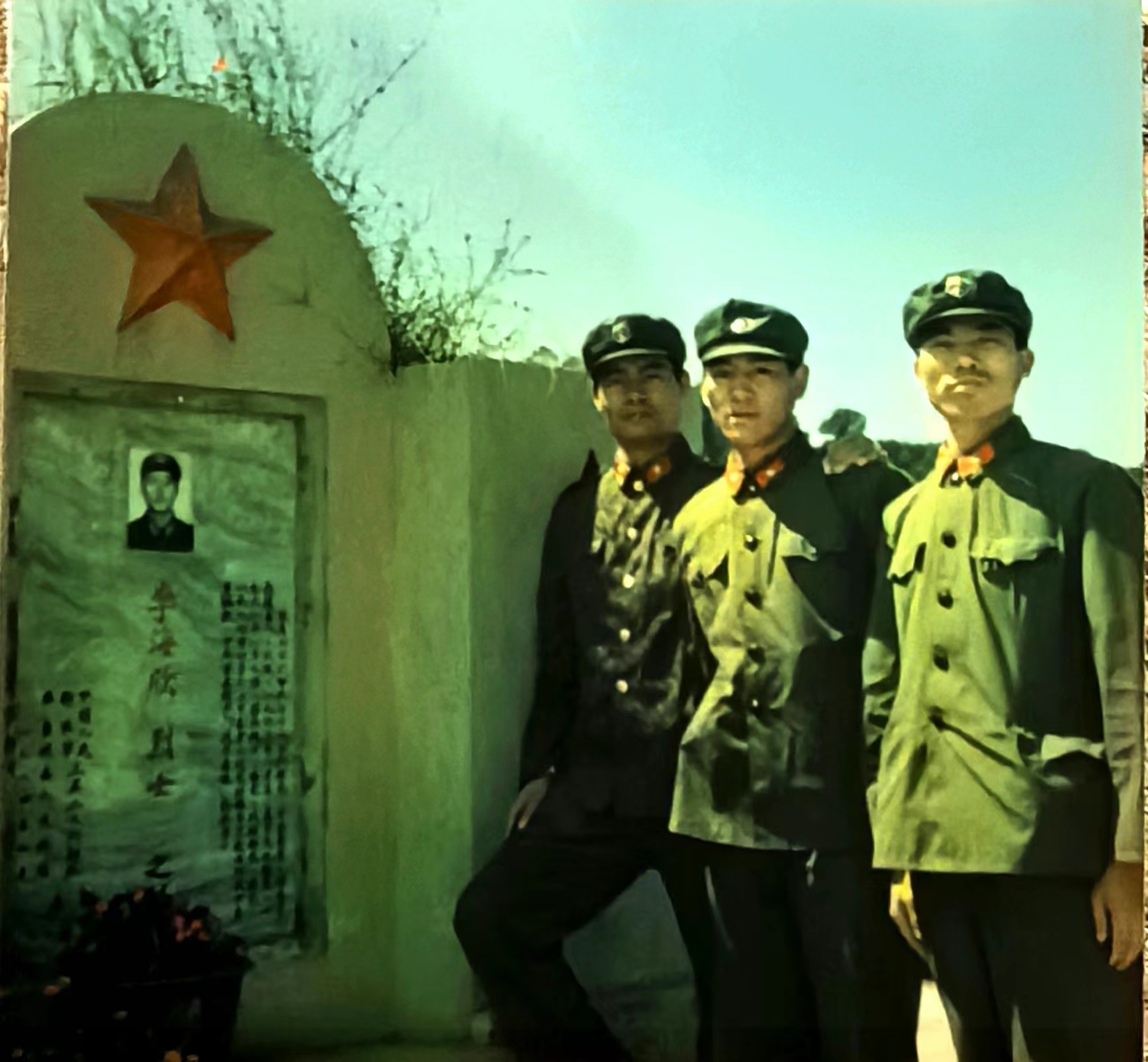 蓦地,一个十分熟悉的名字映入我的眼帘:李海欣,这是当年曾多次在军内外新闻媒体上宣传过的一位战斗英雄,我边防部队某团8连代理排长。在收复老山的战斗中,李海欣率领14名战士,克服重重困难,坚守142号高地55个昼夜。特别是在一次防御战斗中,他指挥全排战士浴血奋战,多次打退数倍于我之敌的疯狂进攻,身负重伤后,仍坚持战斗,直到生命最后一息。李海欣牺牲时年仅22岁。我和同来祭祀烈士的两位战友一起,并排站在李海欣烈士的墓碑前照了一张合影。那是一张特别令人感伤的战友合影照片,至今仍珍藏在我的影集里。每每看到它,我的耳畔就会响起那首熟悉的歌曲《驼铃》:革命路上常分手,一样分别两样情……