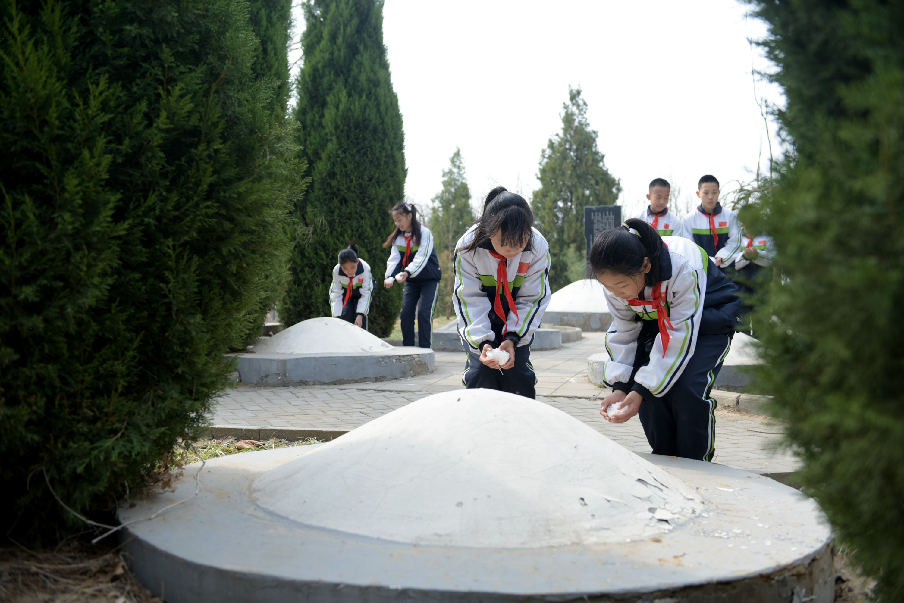 阜城县古城镇张家院小学和漫河镇中心小学组织全体少先队员,聆听了先烈的英勇事迹,缅怀英雄的丰功伟绩。少先队员们为烈士墓献上鲜花,齐唱少先队队歌,表达对革命先烈的深切悼念之情,立志做新时代好少年。