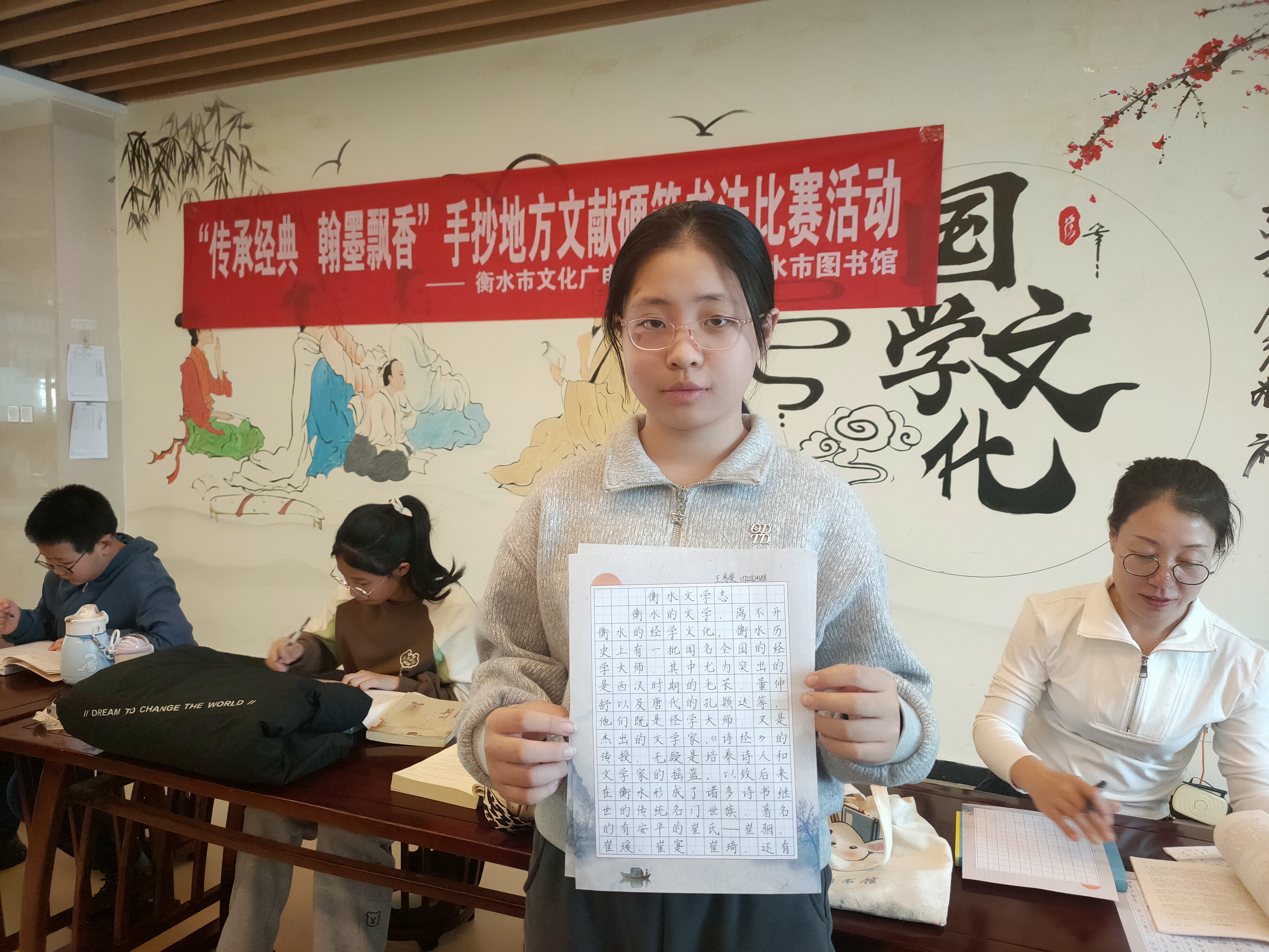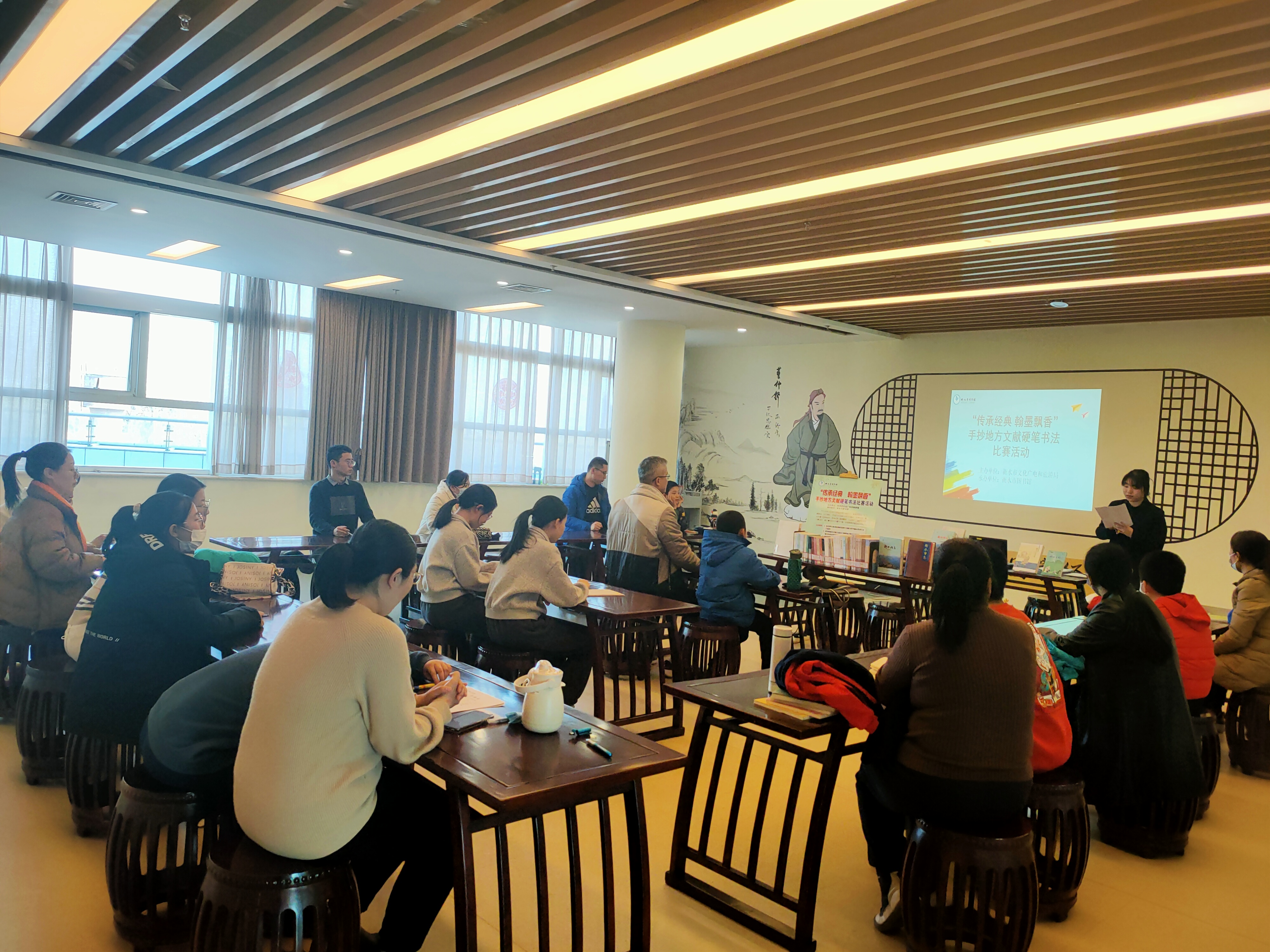 3月9日—3月31日,比赛在图书馆二楼国学馆举行。工作人员详细介绍了图书馆地方文献的藏书概况和文献收藏种类等内容。读者根据自身特长和兴趣,挑选《衡水记忆》《衡水湖的传说》《衡水市志》《衡水谣》《衡水民俗风物》等馆藏地方文献进行手抄,让读者在书写中了解了衡水历史文化内容,体味了衡水地方文化的博大精深。
