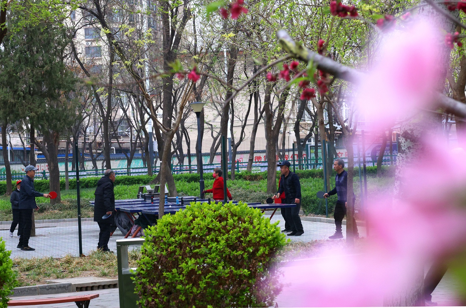 4月1日,记者来到九州广场,这里的榆叶梅、紫叶李正竞相绽放,粉色、白色的花朵挂满枝头,随着春风轻盈舞动,花团锦簇,香气扑鼻,市民纷纷走到户外踏春赏花,感受春天的气息。