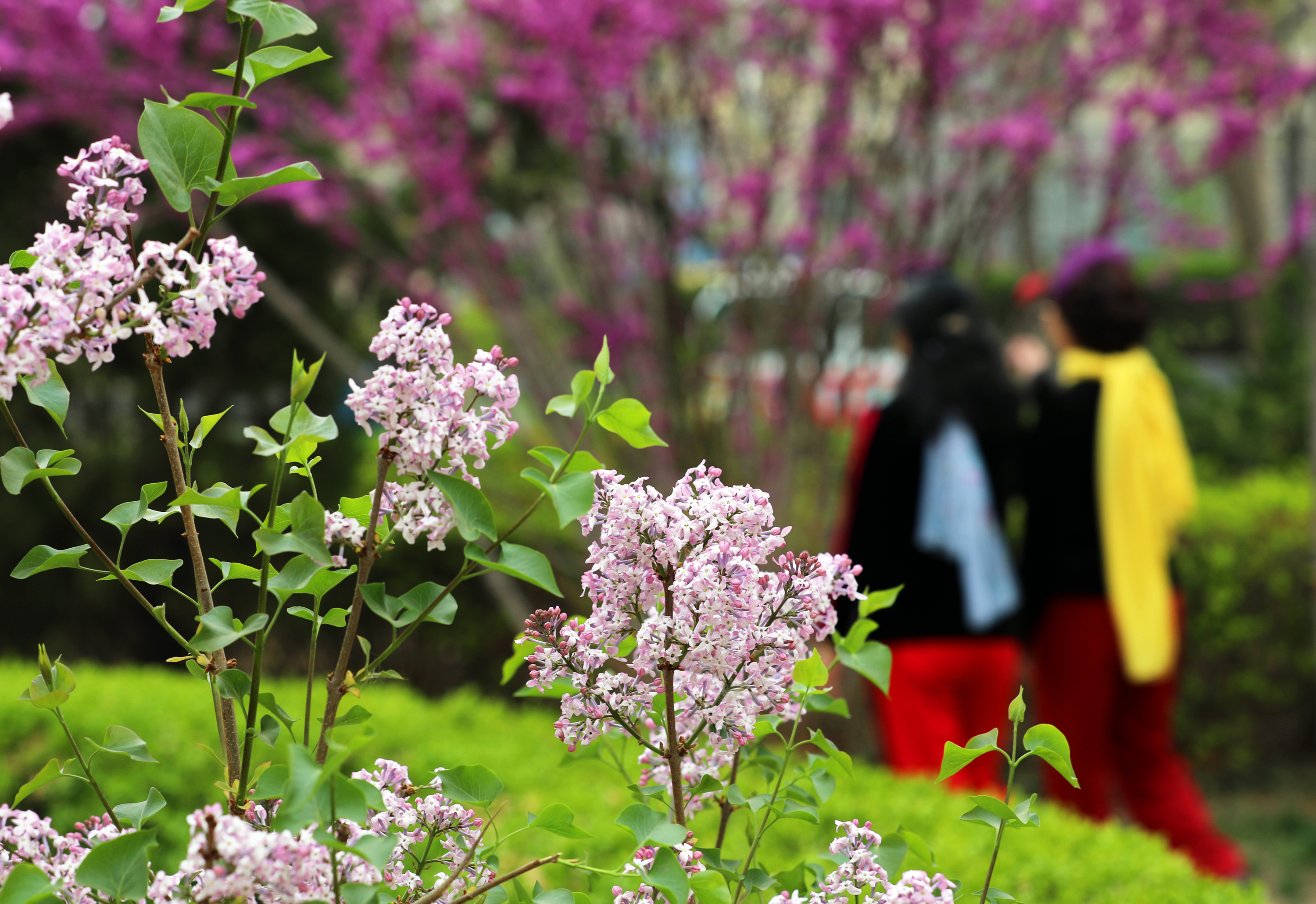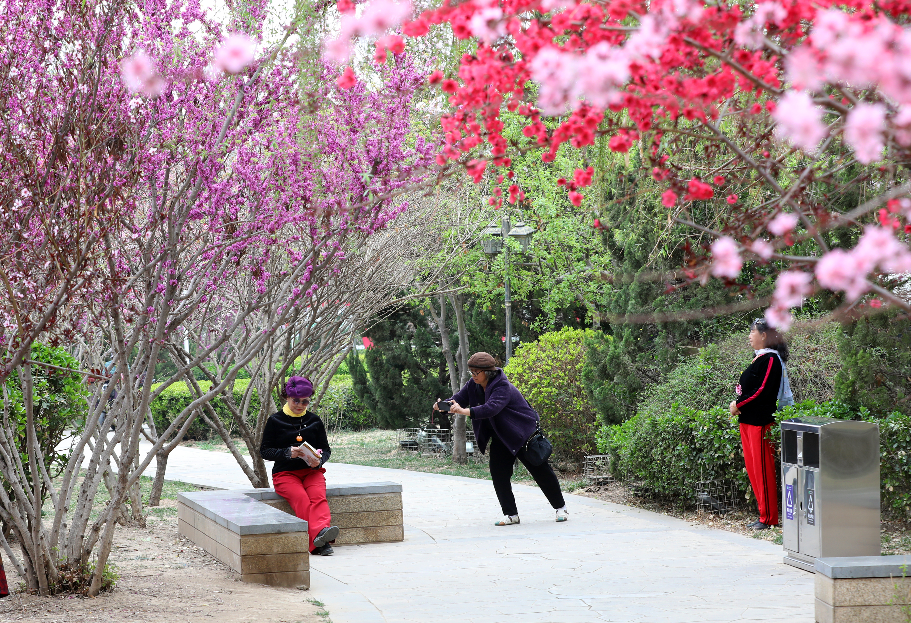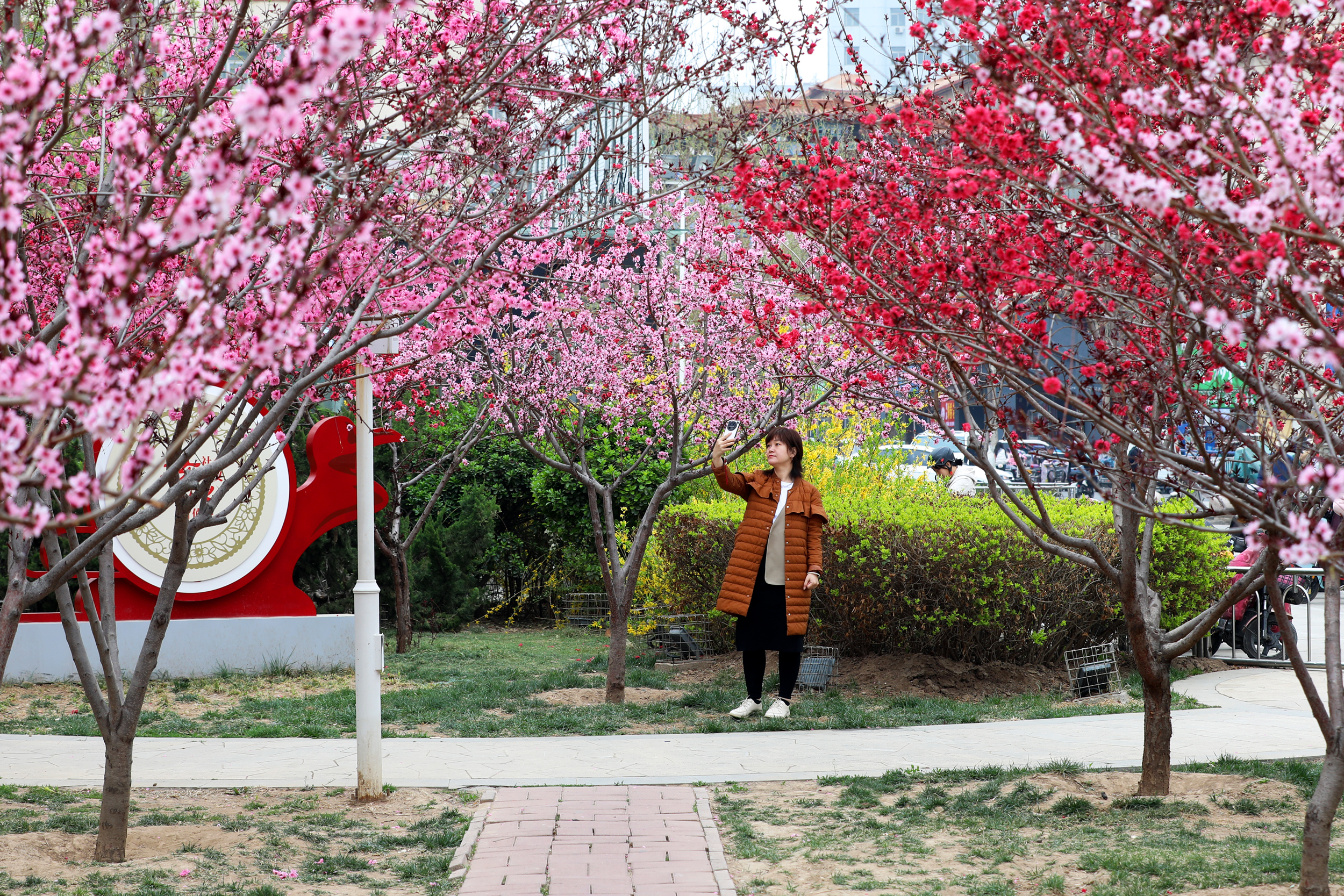 春光烂漫,花开四月。在休闲广场南侧三角绿地,一簇簇紫荆花开得柔美娇艳、一枝枝碧桃花如云似霞、一朵朵西府海棠俏立枝头,美到不可方物。此外,丁香、木槿、紫叶李等各色春花同样争奇斗艳、竞相绽放,为忙碌生活的人们平添几分闲暇惬意的气息。有的人停下脚步,感受大自然的美好;有摄影爱好者对准镜头,留下最美的光影。“别看地方不大,但是花的种类繁多,每年的这个季节,我都会邀约姐妹们一起来打卡拍照,”正在拍照的市民王女士夸赞道,“这里的花色彩斑斓,特别适合拍照和拍短视频,每次来都有不一样的感受。”