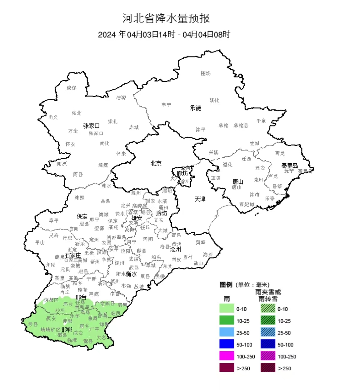 “清明时节雨纷纷”,还未到清明,衡水市便开启了“雨纷纷”模式。4月3日上午,一场小雨降临我市,气温也较前一日稍有下降。4日便开始清明小长假了,据衡水市气象台预报,假期期间,全市各地都将维持晴天和多云切换的状态,没有明显的降水过程。