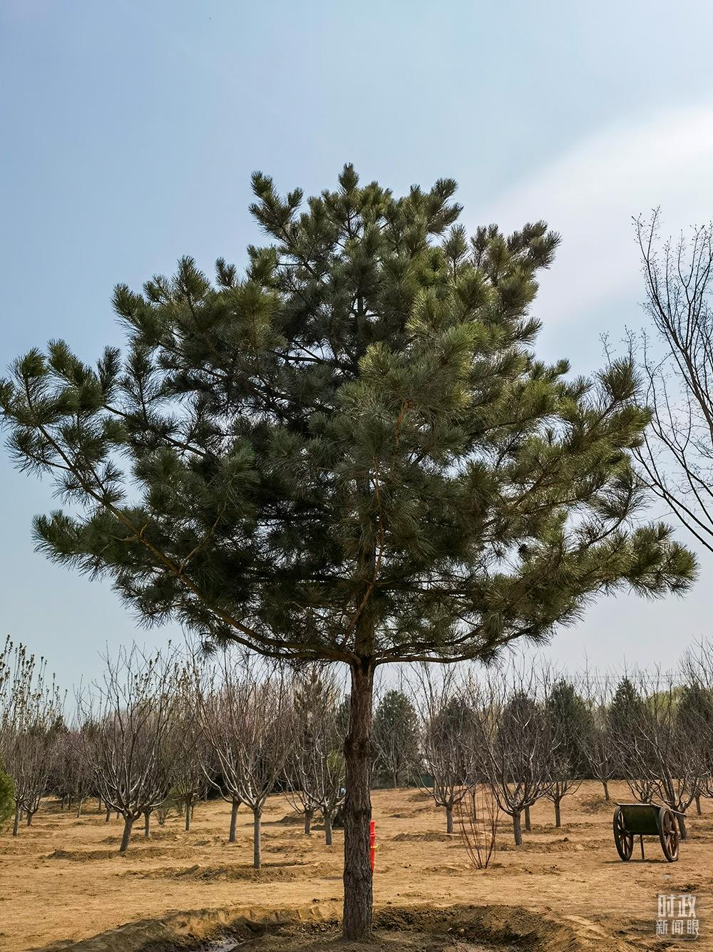 △在潞城镇植树点,习近平接连种下油松、黄栌、元宝枫、樱桃、红叶碧桃、侧柏等多棵树苗,这是他种下的油松树苗。(总台央视记者石丞拍摄)