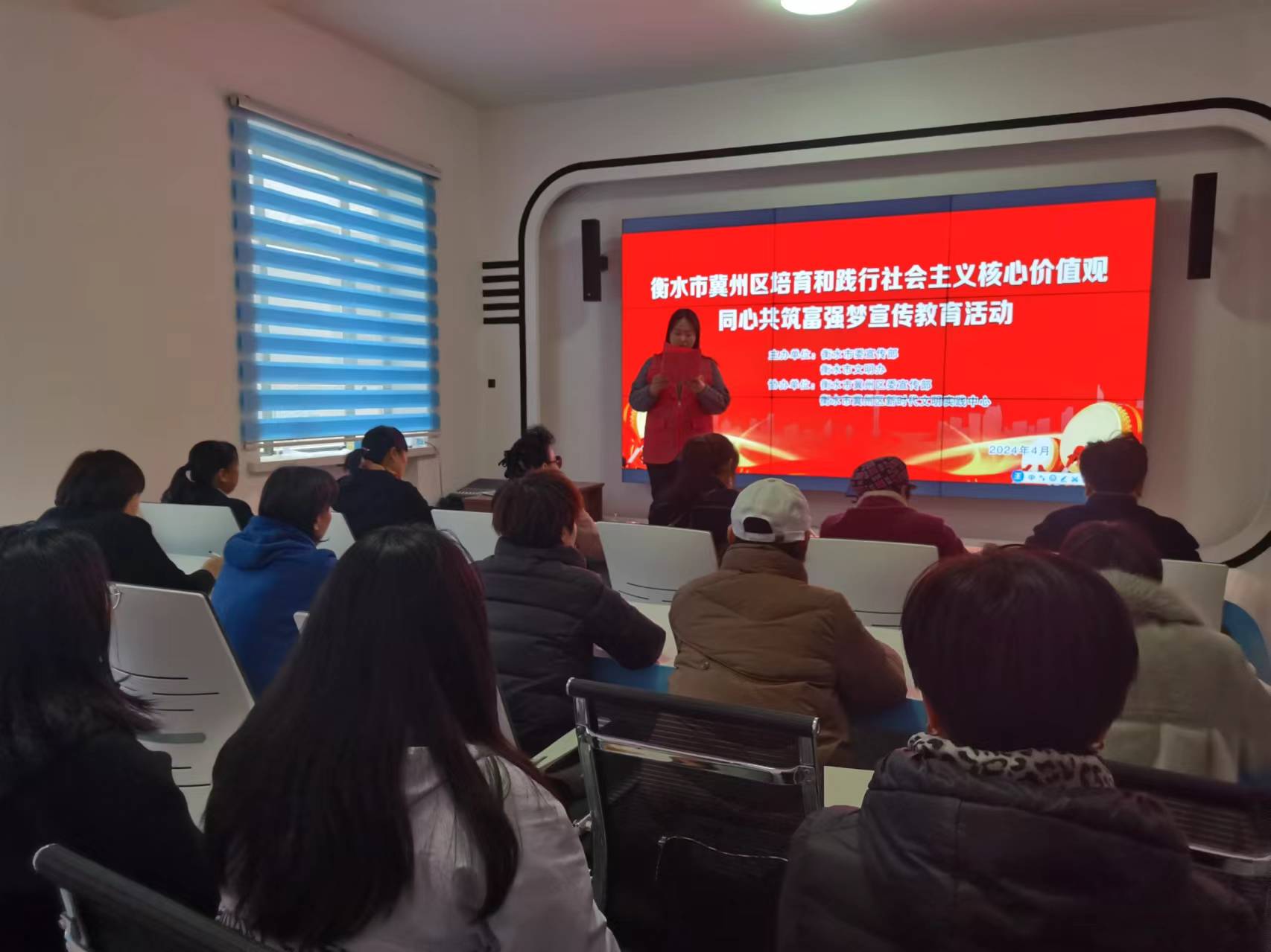4月2日,冀州区在新时代文明实践中心举办“培育和践行社会主义核心价值观,同心共筑富强梦”宣传教育活动,引导群众深刻理解社会主义核心价值观的基本内涵,营造自觉践行社会主义核心价值观的良好氛围。