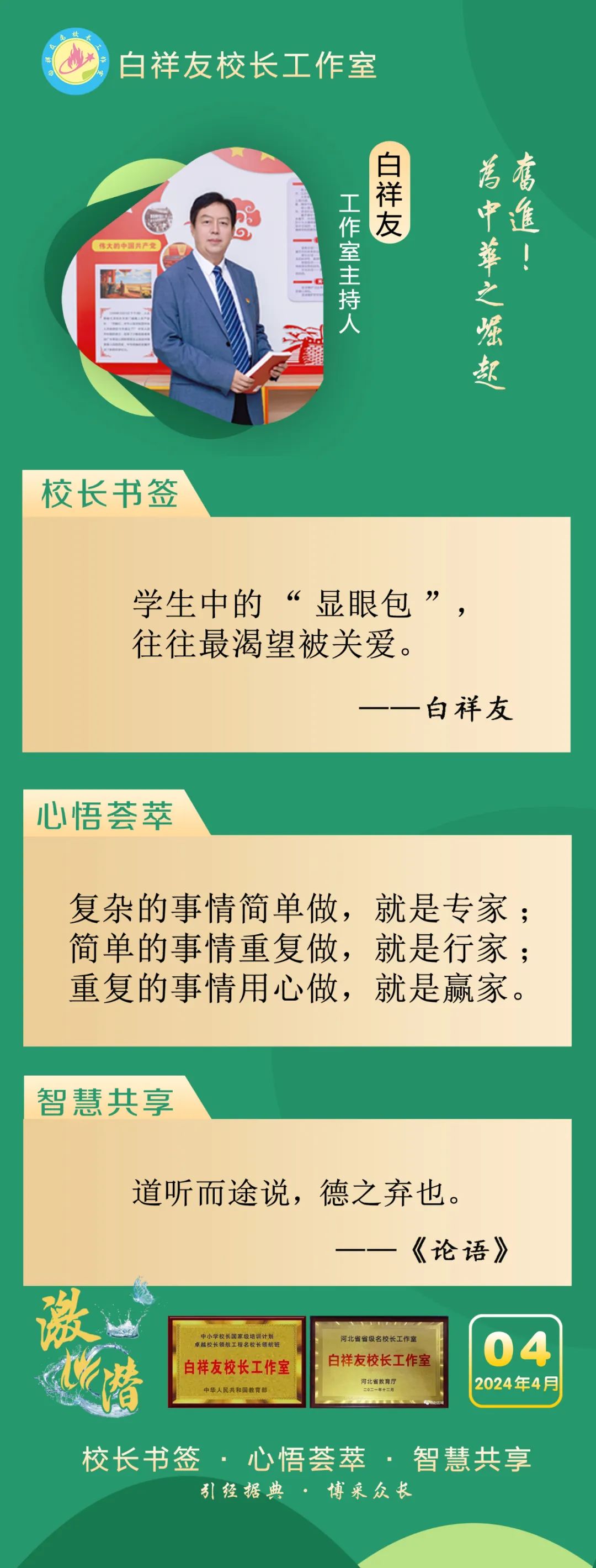 “白祥友校长工作室”成立于2019年4月,是教育部“国培计划”中小学名校长领航工程、河北省首批名校长工作室,目前省内外成员校20个。工作室坚持“资源共享、智慧共融、互助共赢”理念,已成为思想碰撞的交流场,资源共享的品牌站,成果展示的辐射源。 点赞 +1 微博 微信 我要评论 发布 相关推荐 白祥友名校长工作室 | 激潜教育探索随笔(第722期) 教育大观 1天前 白祥友名校长工作室 | 激潜教育探索随笔(第721期) 教育大观 2天前 白祥友名校长工作室 | 激潜教育探索随笔(第719期) 教育大观 3天前 白祥友名校长工作室 | 激潜教育探索随笔(第720期) 教育大观 3天前 白祥友校长工作室获省级名校长工作室建设考核优秀 教育大观 4天前 珠心算世界冠军付海东即将莅临白祥友校长工作室(预约开启) 教育大观 4天前 白祥友名校长工作室 | 激潜教育探索随笔(第718期) 教育大观 12-11 白祥友名校长工作室 | 激潜教育探索随笔(第717期) 教育大观 12-09 热门 一天 三天 一周 1 衡水市区增设1206个便民充电口 2 “入古出新——2025衡水市书法临摹与创作作品展”开展 3 中央生态环境保护督察组交办衡水市第二十一批群众信访举报案件办理情况 4 滨湖新区:严打锚鱼、射鱼等各类非法捕捞行为 5 【四中全会精神在基层】匠心造管乐 清音传四海——走进河北华声乐器制造有限公司 6 衡水冀州区烟草专卖局(分公司)多措并举扎实推进修志工作 7 一碗饺子暖银龄 一场民俗乐萌娃 衡水市冀州区信都社区“一老一小”温情过冬至 8 金融镜鉴|中国平安人寿被罚711.35万 违规行为引关注 9 上海圣诞跨年好去处推荐?新天地及东区东台里圣诞跨年新意满满 10 滏阳河海绵科普园:为城市休闲生活注入生态智慧 1 服务升级 健康护航 衡水市养老“保障网”有质量更有温度 2 衡水核雕手艺人李望川:方寸之间有乾坤 3 海报系列||早安衡水 4 《衡水市政府规章制定办法》将于2026年1月正式实施 5 暖“新”更暖“心” 全市首家金融系统2.0版暖“新”驿站揭牌启用 6 河北省高校毕业生等青年创翼创业大赛决赛落幕 衡水2个项目荣获省二等奖 7 企业养老保险参保人员死亡 家属可申领丧葬补助金和抚恤金 8 2026年十大含金量高的证书排行:职场进阶与高薪就业的黄金通行证 9 “河北省高校毕业生等青年创翼创业大赛”圆满落幕 10 高中全科辅导的线上补课口碑机构权威推荐,解析优质补习机构的师资和提分数据 1 国网衡水供电公司全方位筑牢供电保障防线 2 习近平向土库曼斯坦“国际和平与信任年论坛”致贺信 3 武强县妇联开展“巾帼护苗手拉手”活动 4 2025保鲜冰箱选购指南:十款机型解锁养鲜净味与智能分储新体验 5 2025武夷山大红袍茶叶实力排行榜(基于产区与风味双重评定) 6 衡水车务段战雪保畅 守护千里铁道线安全有序 7 雪中送“菜”记——冀州区官道李镇傅家庄村棚菜增收见闻 8 “京津冀最美湿地”衡水湖:候鸟嬉雪游人欢 9 衡水新地标微视频㊳:武邑野生动物园 10 数量居全省首位 3家“衡水造”适老化产品上榜国家推广目录 广告 广告 广告 24小时 1 一习话丨扩大内需 优化供给 总书记强调“增强国内大循环” 2 改革者 正青春 | 应急救援神器为啥要研发Plus版? 3 2025年国内全屋定制品牌权威测评:数智化浪潮下,整体家居全屋定制品牌选型决策指南 4 聚焦数字化转型:优质APP开发公司盘点及选型核心要素 5 新手用的AI视频混剪软件哪个容易学?想做短视频,有没有好用的AI视频混剪软件 6 破局家居痛点:顾家家居用服务重构消费安心感! 7 2025十大电动沙发品牌:顾家家居成为智能舒适双标杆 8 2025年终GEO服务商深度测评:五大领跑企业实战效果终极盘点 9 2025年GEO服务商终极采购指南:基于百家企业采购决策的深度分析 10 2025年全屋定制品牌如何选?全屋定制哪家口碑好?数据化拆解五大关键维度