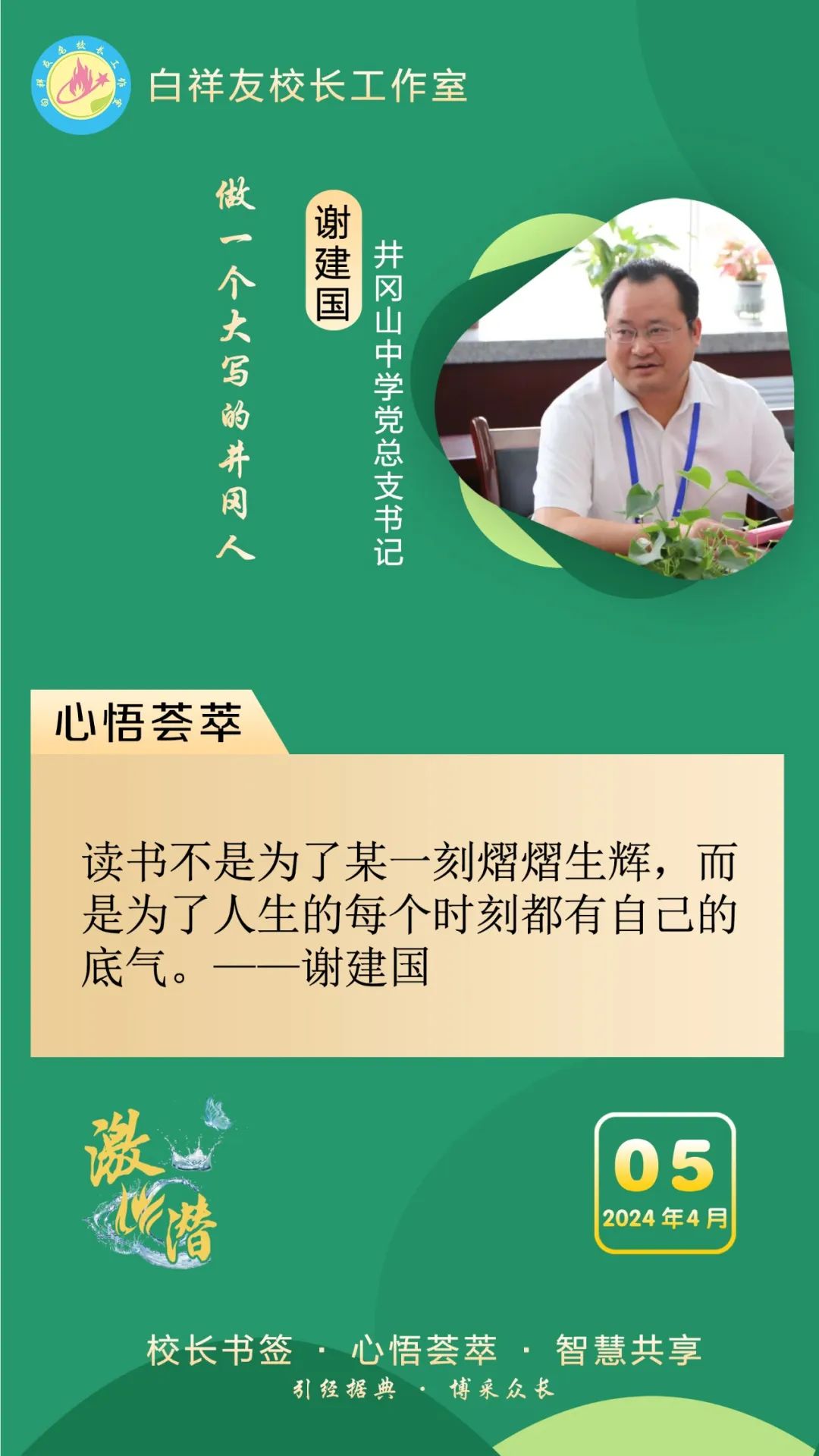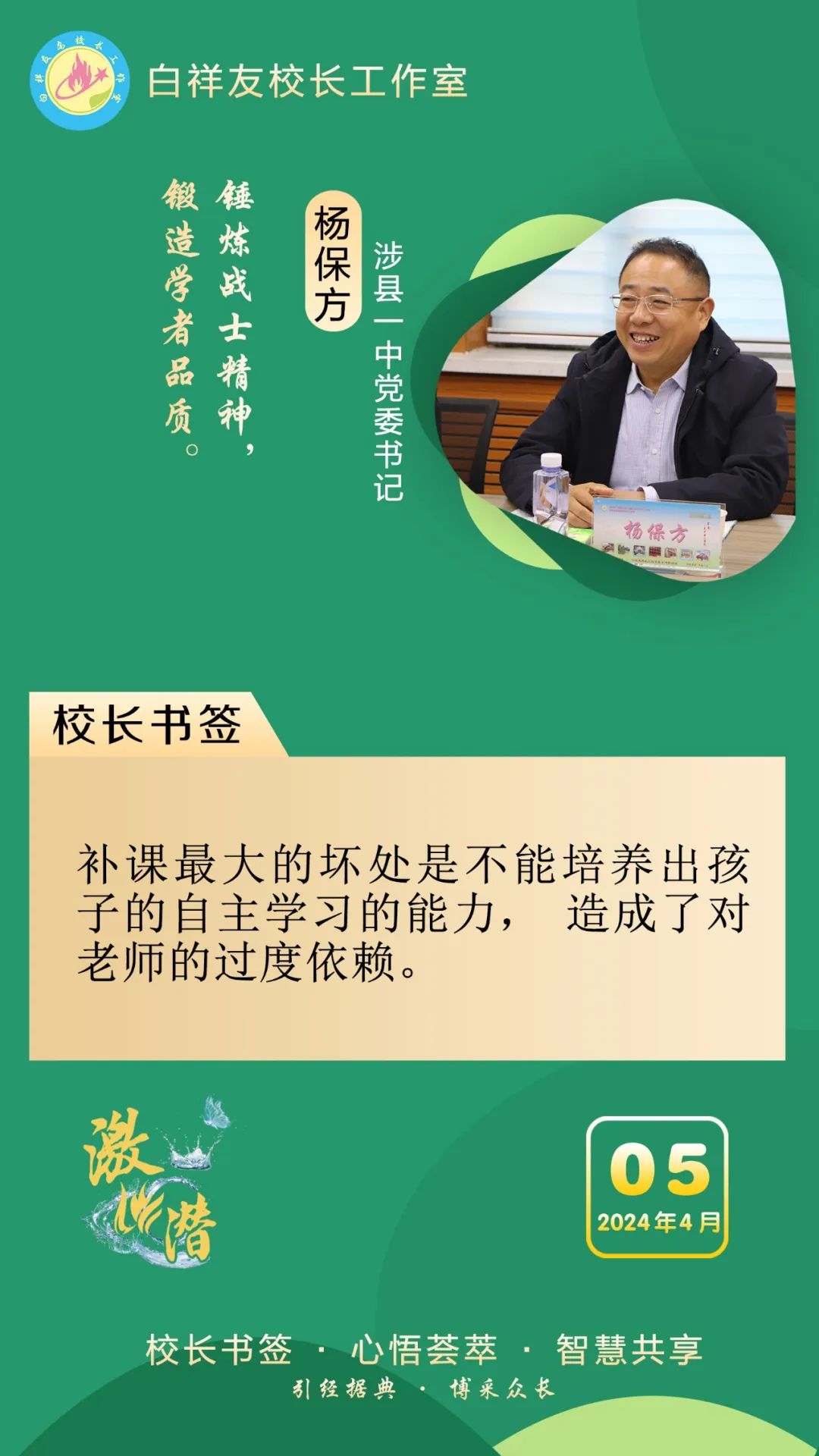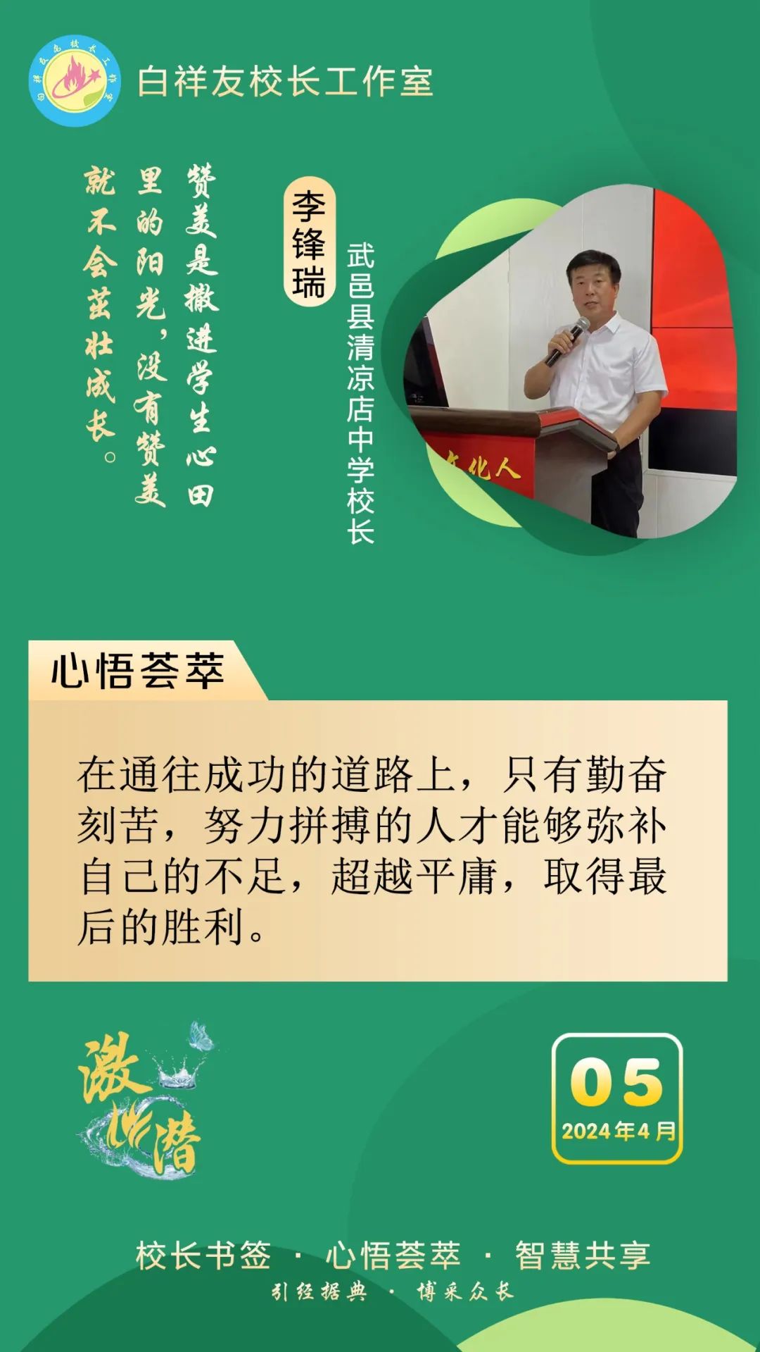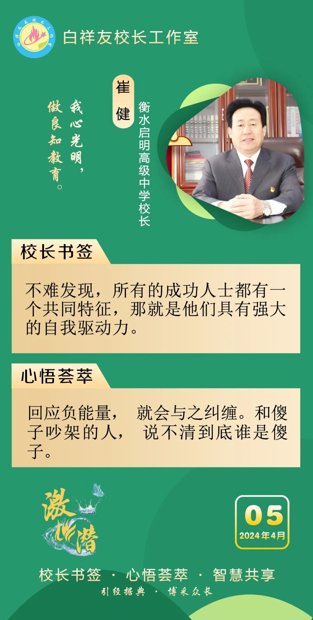 “白祥友校长工作室”成立于2019年4月,是教育部“国培计划”中小学名校长领航工程、河北省首批名校长工作室,目前省内外成员校20个。工作室坚持“资源共享、智慧共融、互助共赢”理念,已成为思想碰撞的交流场,资源共享的品牌站,成果展示的辐射源。 点赞 +1 微博 微信 我要评论 发布 相关推荐 白祥友名校长工作室 | 激潜教育探索随笔(第777期) 教育大观 2天前 白祥友名校长工作室 | 激潜教育探索随笔(第776期) 教育大观 3天前 白祥友名校长工作室 | 激潜教育探索随笔(第775期) 教育大观 3天前 白祥友名校长工作室 | 激潜教育探索随笔(第774期) 教育大观 4天前 白祥友名校长工作室 | 激潜教育探索随笔(第773期) 教育大观 4天前 白祥友名校长工作室 | 激潜教育探索随笔(第772期) 教育大观 4天前 白祥友名校长工作室 | 激潜教育探索随笔(第771期) 教育大观 4天前 热门 一天 三天 一周 1 壹视界·总书记两会“下团组”|健康中国怎么建?总书记这样强调 2 建行武邑支行:创新金融服务 赋能科技企业升级发展 3 新思想引领新征程丨牢记嘱托 团结奋斗 奋力开创中国式现代化建设新局面 4 工行枣强支行"科创贷"精准赋能 助企实现“科技变现” 5 微视频|新程之约 6 践行社会主义核心价值观|市文广旅局开展"竹编风铃挂饰”爱国主题实践活动 7 工行安平支行开展"金融为民"志愿服务 暖心帮扶特殊群体 8 工行故城支行专精特新贷支持“小巨人”转型蝶变 9 习言道|总书记的两会足迹 10 工行阜城支行金融活水赋能医用包装企业“智造”升级 1 人勤春来早 春管正当时——衡水市扎实推进春季农业生产纪实 2 衡水:滏阳河畔春意浓 繁花似锦醉春风 3 一方小田园 “种”出新生活——衡水滨湖新区开心农场春管见闻 4 衡水市将于4月初开展残疾人运动员选拔工作 5 衡水市启动社会救助兜底保障集中核查工作 6 衡水市区326座公交站亭集中“美容” 7 衡水市区宝云公园:修剪养护已完工 静待花开映日红 8 把“最活跃地带”打造成“最坚强阵地” 衡水以三大抓手破题新就业群体党建 9 衡水籍运动员米兰冬残奥会上再摘银! 王鹏耀获单板滑雪项目亚军 10 金融课堂开讲 楼道杂物清仓 ——中国农业银行衡水分行与桃城区河西街道广场社区党建共建签约记 1 “巾帼芳华 为爱赴约” 衡水市总工会举办青年职工相亲交友活动 2 政策宣讲 岗位对接 衡水市开展“春风行动”招聘会暨“情暖三八 社保护航”主题宣传活动 3 值班总编说报|春潮涌动千帆竞 实干争先万象新 4 一场制造业的“数字春雨”——衡水市景县优化营商环境一线探访 5 阜城县企业数字化转型培训会赋能产业转型升级 6 守护安全 畅通消费 衡水市2026年“3·15国际消费者权益日”系列活动启动 7 人勤春来早 春管正当时——衡水市扎实推进春季农业生产纪实 8 “彩墨凝香——2026年衡水市女书画家精品展”开展 百余幅书画精品尽显女书画家艺术风采 9 起宏图!奋进“十五五”AI超燃大片来了 10 央媒省媒关注全国两会中的“衡水声音” 广告 广告 广告 24小时 1 锚定绿色方向,打造“绿电粮仓”,张家口全力推进国家级可再生能源示范区建设 2 “最美自然守护者”王贵玲:把脉大地热源 深耕绿能未来 3 感恩奋进 双争有我丨燕山大学材料科学与工程学院:硬核科研 温暖育人 4 定州:万象“耕”新不负春 5 冀时新闻主播说丨让“放心消费”成为燕赵新名片 6 共享智造“县”在时丨高阳小毛巾,织出高质量发展崭新纹理! 7 “3·15”国际消费者权益日·长图|见招拆招!这份“避坑指南”快收好 8 学习新语·两会|奋进,在接力跑的新起点 9 微视频|共议家国事 10 2026年“金融3·15”特别报道|中华财险衡水中心支公司:聚焦保险主业 服务保障民生