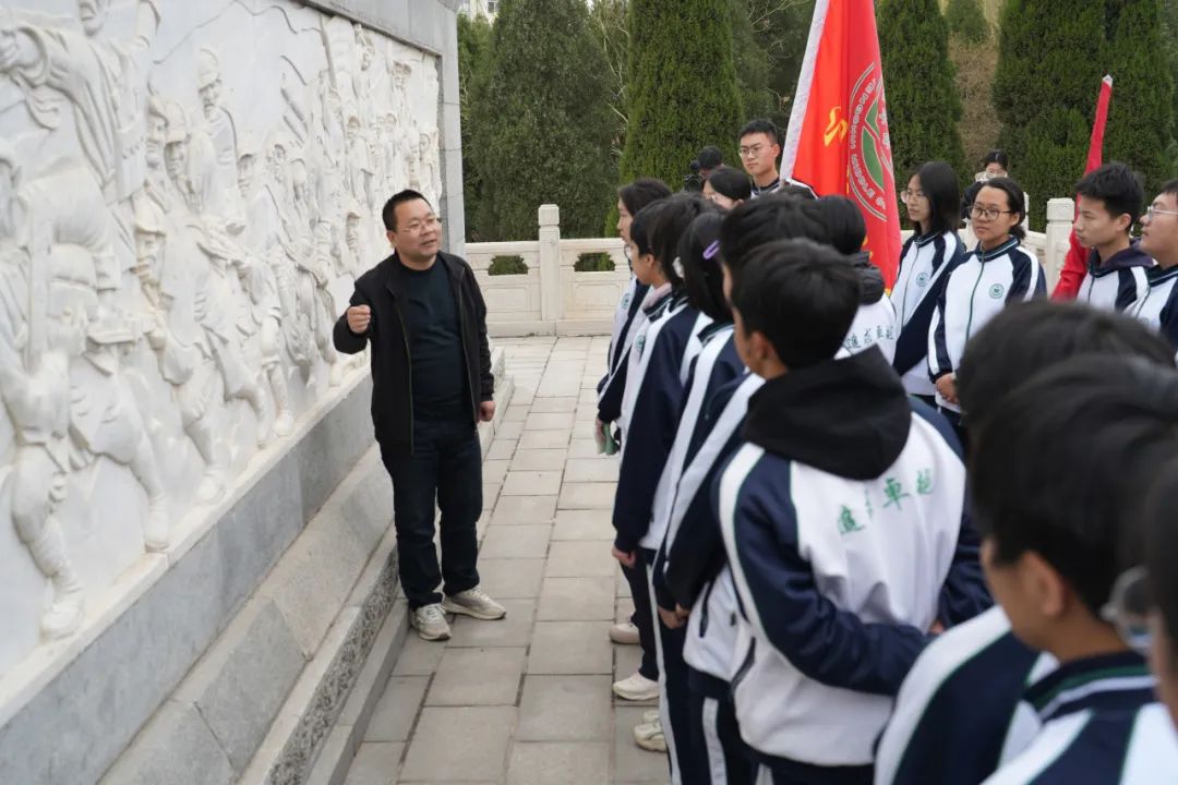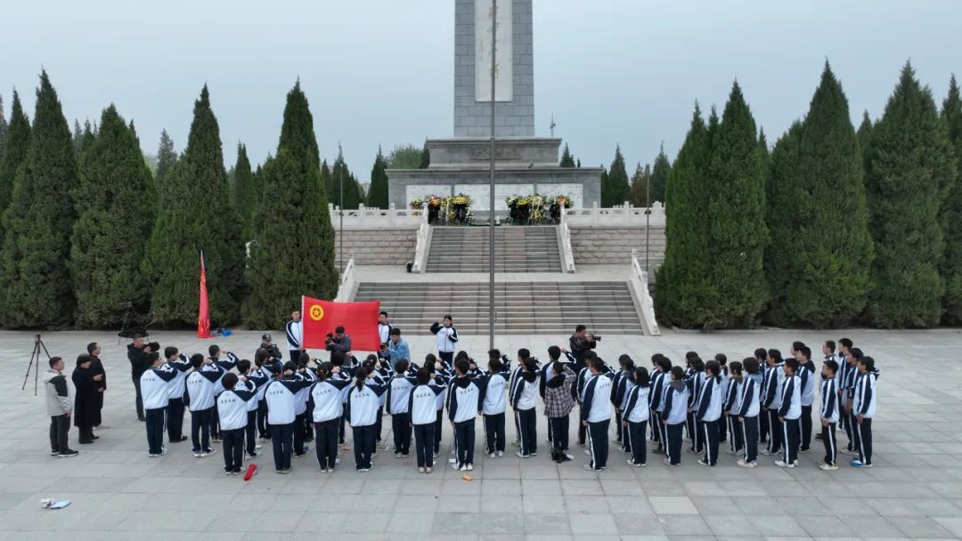 参加祭扫的同学们全体肃立,向烈士敬献花圈、鞠躬默哀、祭奠忠魂,学生代表带领同学们重温了入团誓词。大家缓步绕碑一周,仔细聆听老师的讲解,深入了解革命先烈的生平事迹,重温革命先烈的丰功伟绩。