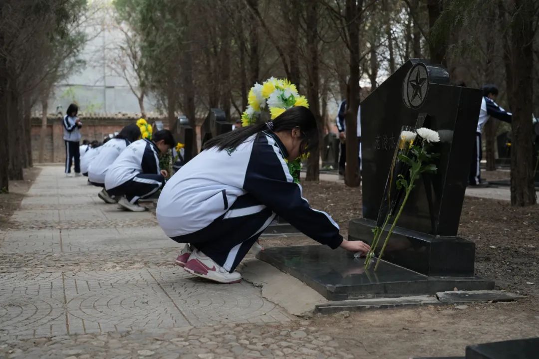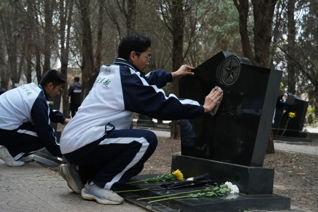 最后,同学们来到烈士墓前,擦拭墓碑,向先烈致以最崇高的敬意和追思。