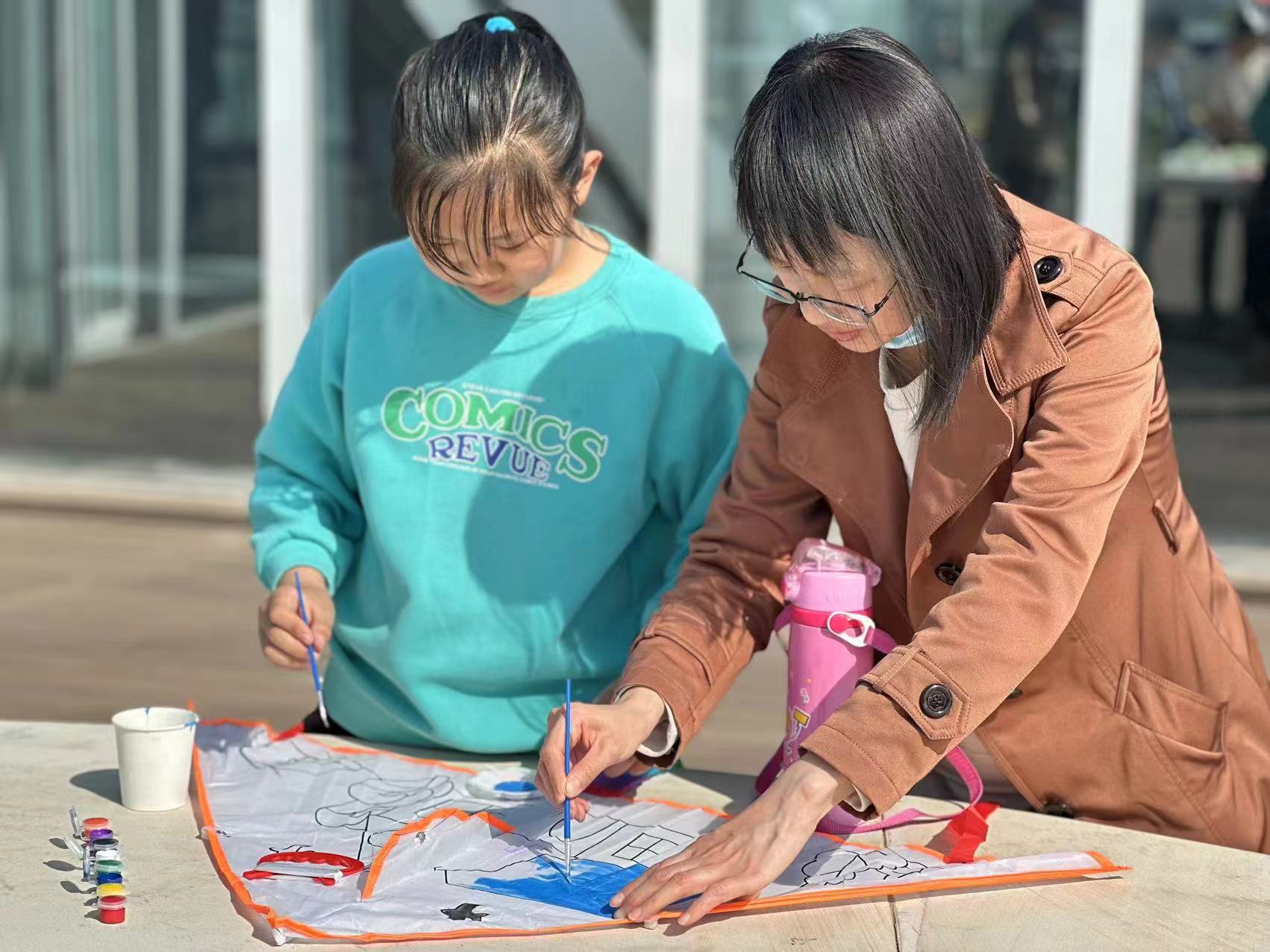 随后小读者们纷纷选择自己喜欢的风筝图案,争先恐后地开始了创作。一只只空白的风筝被他们绘上美丽的图案,五彩斑斓的童心世界在风筝上跃然而出。制作完成后,小读者们与家长来到室外,在温暖和煦的春风里,放飞自己精心绘制的风筝。五颜六色的风筝在空中飞翔,孩子们尽情地挥洒着欢笑与快乐。