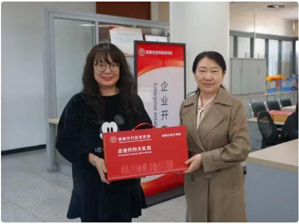 3月18日下午3时许,企业注册专区迎来一位特殊的客人——邯郸供销汽车运营管理有限公司财务经理冯思源。在这里,她从市行政审批局局长陈淑英手中接过印有“邯郸办事不用跑”字样的“企业开办大礼包”,礼包中有企业公章、财务专用章和法人手章三枚印章,还有税务开户、银行开户等业务指南。